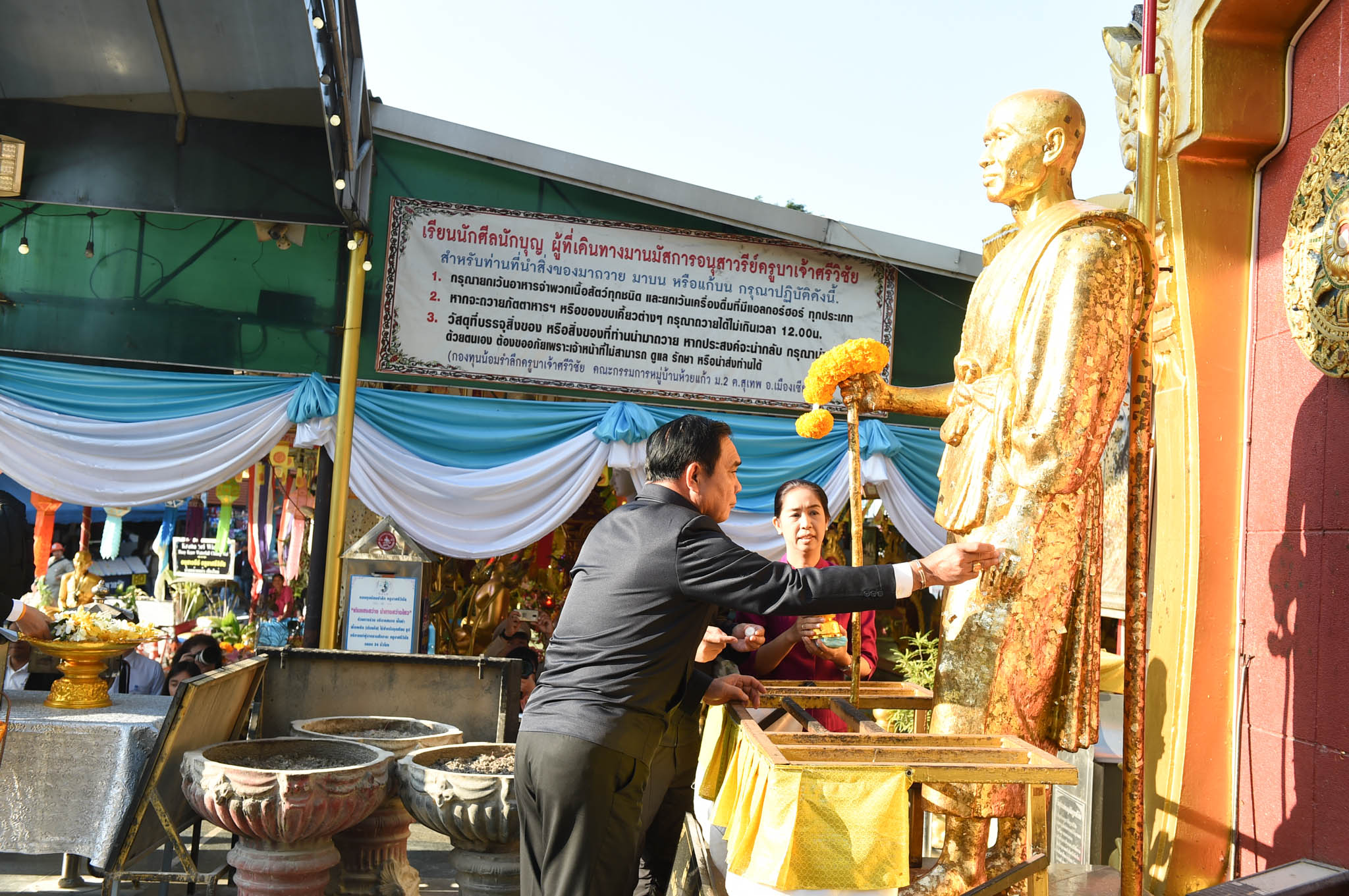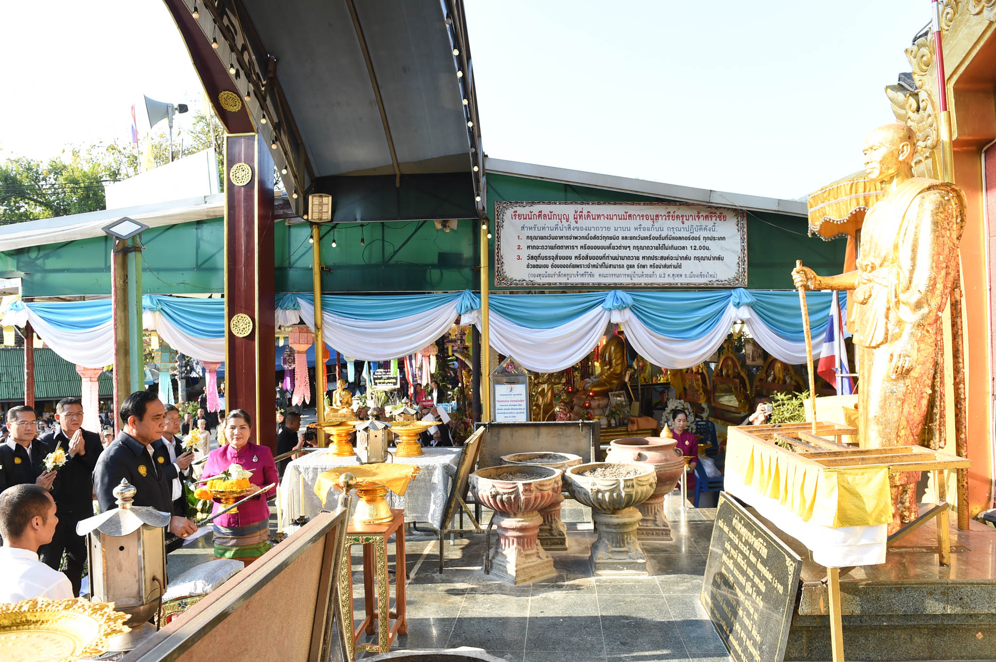 นายกรัฐมนตรี พา ครม.แอ่ว จ.เชียงใหม่ สักการะอนุสาวรีย์ครูบาศรีวิชัย ด้าน แกนนำ พปชร.หอบว่าที่ผู้สมัคร ส.ส.ให้กำลังใจ ขณะที่แฟนคลับ “ลุงตู่” ก็ไม่พลาดเช่นกัน