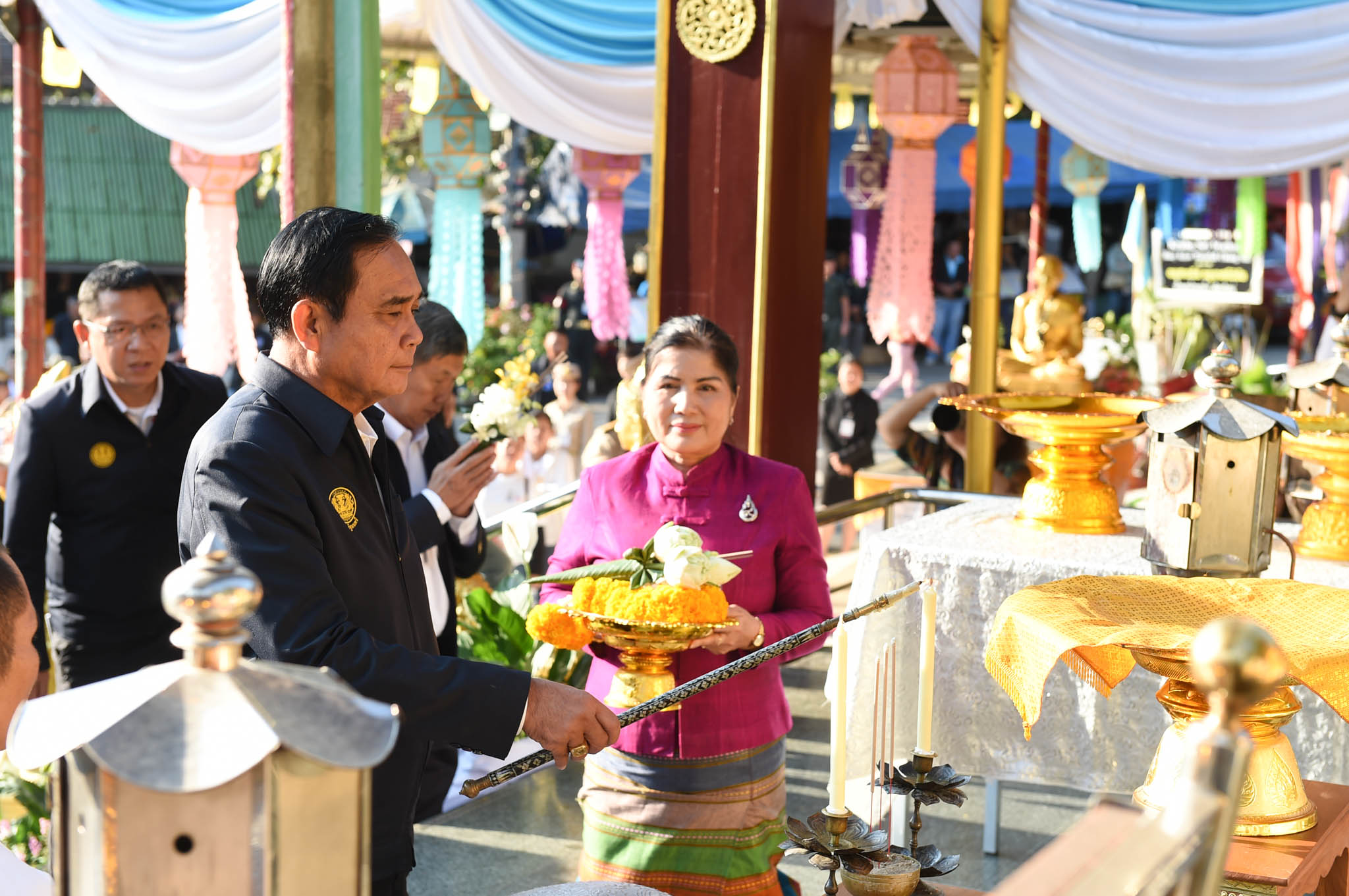 นอกจากนี้ ยังมีนายชวน ชูจันทร์ กรรมการบริหารพรรคพลังประชารัฐ (พปชร.) พร้อมด้วยว่าที่ผู้สมัครส.ส.ภาคเหนือทั้ง 9 เขตเลือกตั้ง อาทิ นางกิ่งกาญจน์ ณ เชียงใหม่ ว่าที่ผู้สมัคร ส.ส.เชียงใหม่ เขต 4 ร.อ.หญิงเดือนเต็มดวง ณ เชียงใหม่ อดีตนายกเทศมนตรีนครเชียงใหม่ และว่าที่ผู้สมัคร ส.ส.เชียงใหม่ เขต 5 นายสันติ ตันสุหัช อดีต ส.ส.เชียงใหม่ พรรคไทยรักไทย ในฐานะว่าที่ผู้สมัครส.ส.เชียงใหม่ เขต 6 ทั้งขณะที่นายชวน ยืนยันว่า ที่มาในวันนี้ ไม่ได้เรื่องการเมืองหรือมาทาบทามให้เป็นนายกรัฐมนตรีในบัญชีพรรคพลังประชารัฐ เพียงแค่มาให้กำลังใจและมาไหว้พระ