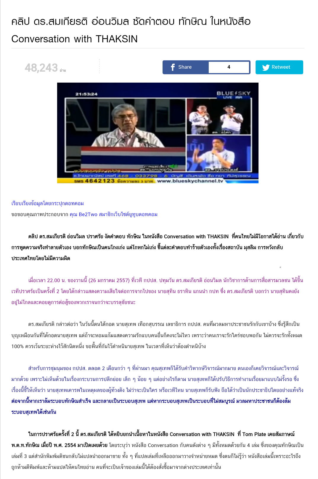 และนี่คือเรื่องจริงจากปาก นายทักษิณ ที่คนไทยไม่มีโอกาสได้อ่าน