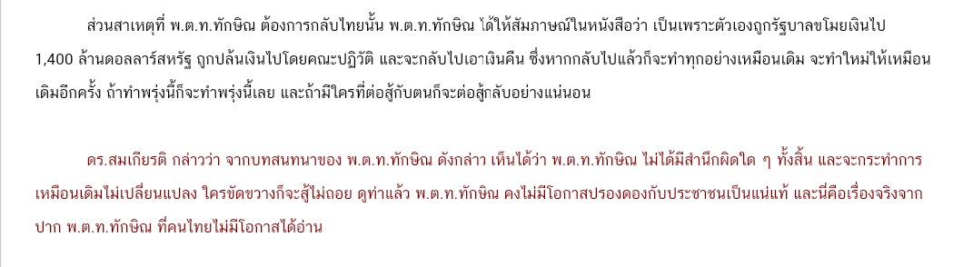 นายทักษิณ ไม่ได้มีสำนึกผิดใด ๆ ทั้งสิ้น และจะกระทำการเหมือนเดิมไม่เปลี่ยนแปลง
