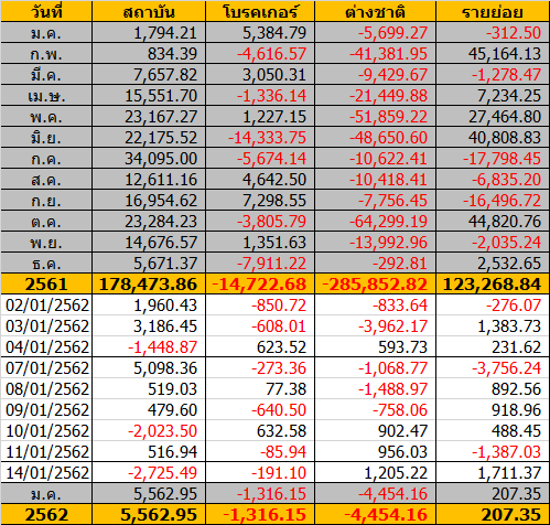 Sinthorn Summary 14/1/2562 : ต่างชาติซื้อสุทธิ 1,205.22 ลบ.