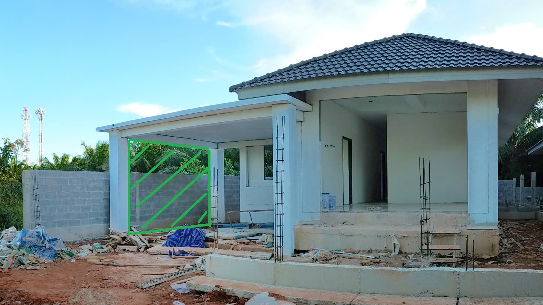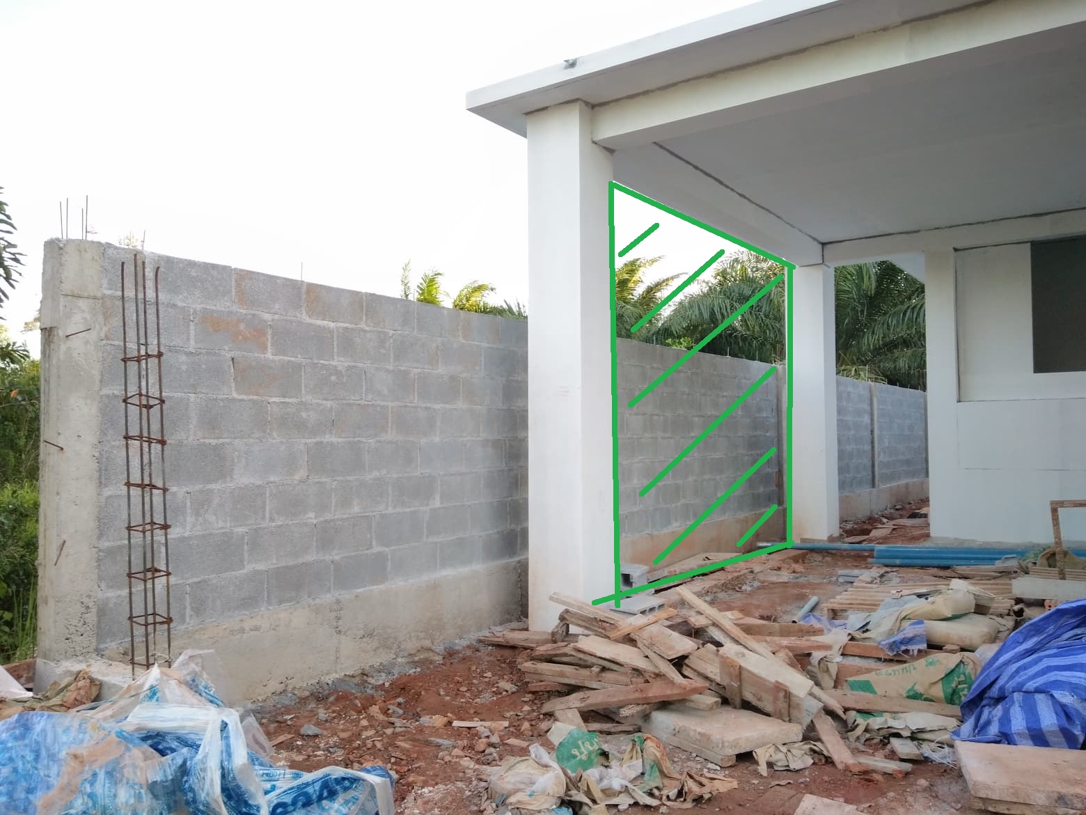อยากให้ริมโรงจอดรถเป็นเหมือนกำแพงต้นไม้เขียวๆ ต้นไม้ที่ถูกใจคือ ต้นไทรเกาหลี แต่ทราบมาว่าเค้าชอบแดดจัดๆ