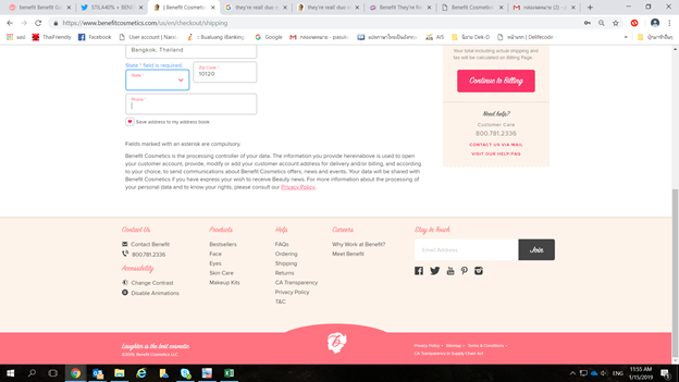 ขอสอบถามเพื่อน ๆ หน่อยค่ะ ต้องการซื้อเครื่องสำอางค์จากเว็ปไซต์ของต่างประเทศค่ะ (benefitcosmetics.com) ตอนที่เค้าให้เรากรอกที่อยู่ค่ะ มันเป็น state ซึ่งเราไม่กรอกไม่ได้ เหมือนบังคับกรอกค่ะ เราต้องทำยังไงคะ ถึงจะซื้อได้ (ตามรูปที่ส่งให้ดูค่ะ) รบกวนขอคำแนะนำจากเพื่อน ๆ หน่อยค่ะ