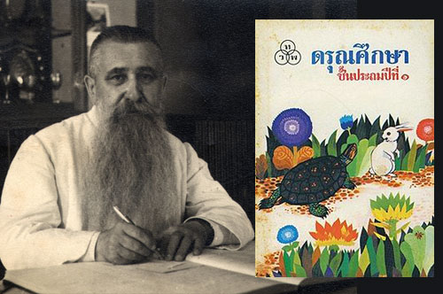 “นี่คือ หลุมของ คุณพ่อ ฮีแลร์ คนเขียนหนังสือดรุณศึกษา ที่ให้เด็กๆอ่าน ฝรั่ง แต่งหนังสือไทย คนไทยเรียก ฟ ฮีแลร์หลุมท่านอยู่ตรงนี้ แล้ว ที่เห็นเป็นชาวฝรั่งเศส เขียนว่า ตูลิเย โดนาเซียง นั่นเป็นครูสอน Grammar ผมสมัย ม.4 แต่ก่อน เป็นทหารปืนใหญ่ฝรั่งเศสแล้ว เบื่อสงครามเลยมาบวช แล้วก็สอนหนังสือ จนท่านเสีย”