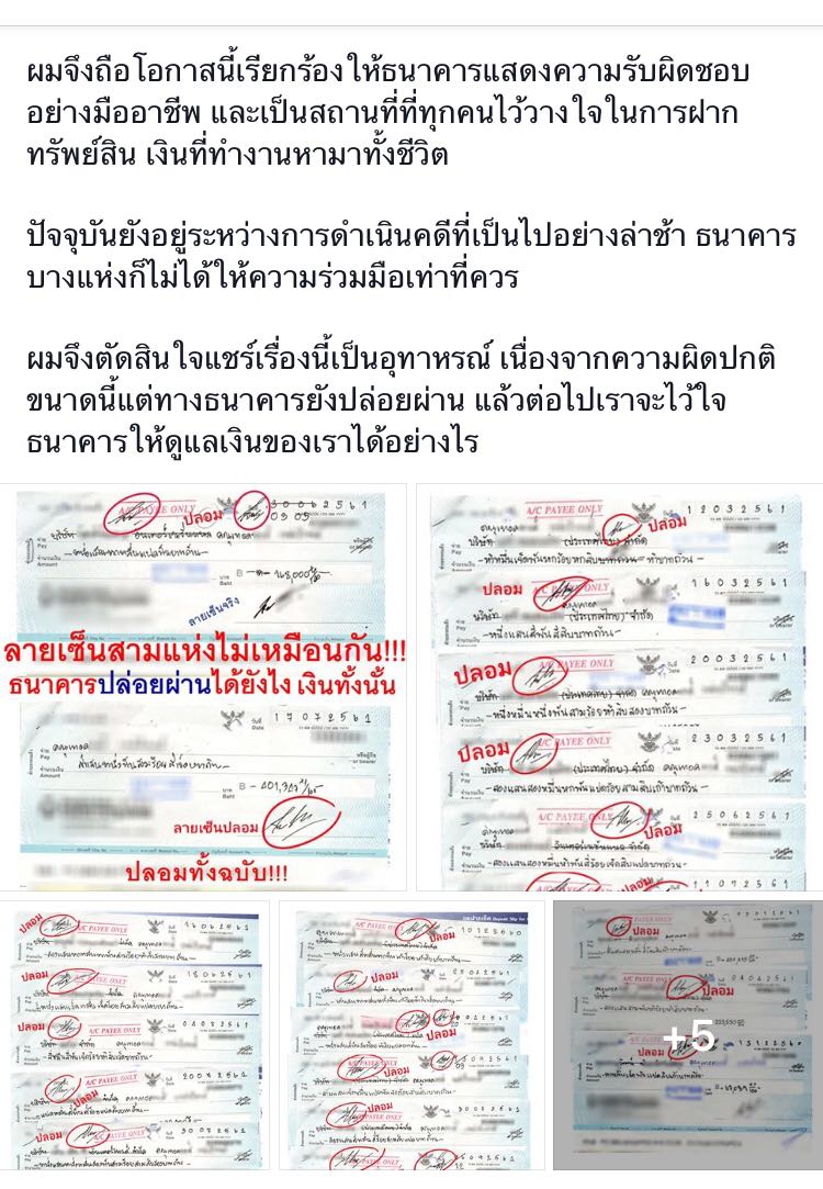 “เมื่อผมถูกปลอมเช็ค และสูญเงินกว่า 8 ล้านบาท! แต่ 4 ธนาคารยักษ์ใหญ่กลับปล่อยผ่าน”