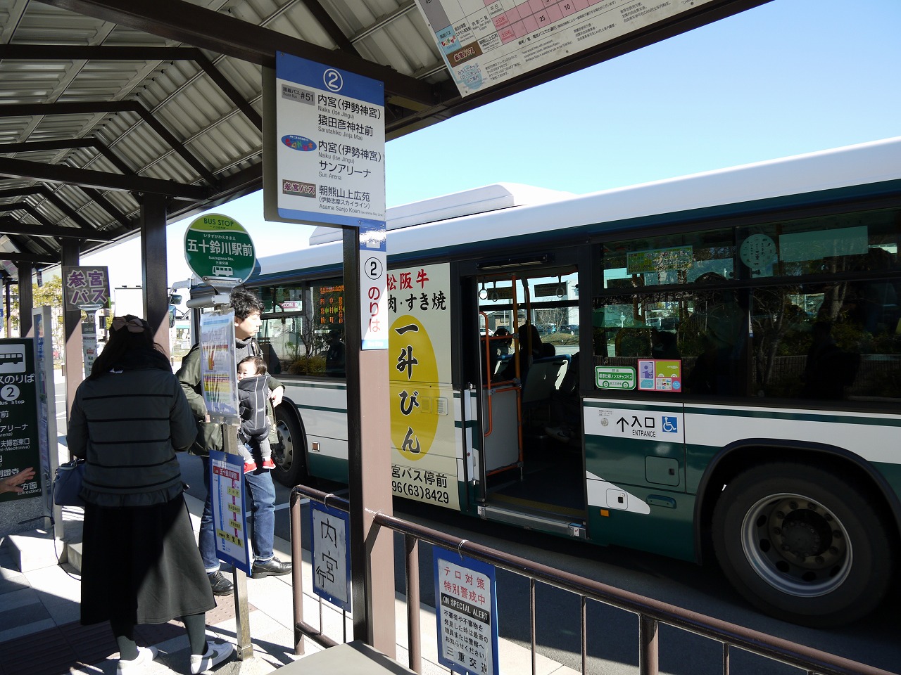 ขึ้นรถบัสจากอิเสะจินกูกลับไปที่สถานีอิซึซุคาวะ