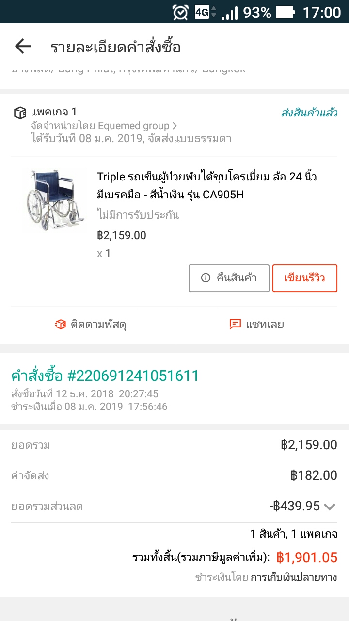 ผมสั่งซื้อสินค้า lazada ในช่วงโปรโมชั่น 12/12 เป็นรถเข็นวีลแชร์สำหรับคนป่วย เลย 1 เดือนแล้วผมก็ยังไม่ได้รับสินค้า แต่ในระบบขึ้นว่าสินค้าถูกจัดส่งเรียบร้อยแล้ว ผมตามเรื่องมา 3 สัปดาห์จนป่านนี้ lazada ก็ยังยื้อไปยื้อมา ถ้าเป็นสินค้าอื่นๆไร้สาระผมคงทิ้งเรื่องนี้ไปแล้ว แต่นี่เป็นสินค้าจำเป็นที่จะซื้อไปให้คนป่วยใช้และได้ราคาพิเศษถึงพยายามตามเรื่อง เซ็งมากๆ ถึงจะเป็นการเก็บเงินปลายทาง ที่ผมไม่เสียประโยชน์อะไรในการสั่งสินค้าแล้วไม่ได้ของครั้งนี้ก็ตามแต่มันก็เสียความรู้สึกเสียความตั้งใจรวมทั้งเสียสิทธิ์ที่เราจะได้ของราคาพิเศษด้วย