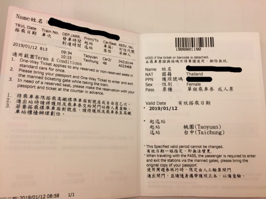 นี่ค่ะในรถไฟ คือสบายอ่ะ (เมืองไทยน่าจะมีแบบนี้บ้าง) แต่ราคาก็ใช่ว่าจะถูกน้าา เราๆชอบใช้เงินแก้ปัญหา 55555 ทริปจากสถานีเถาหยวนไปไถจง สนนราคาอยู่ที่ 437.22 บาทต่อคน