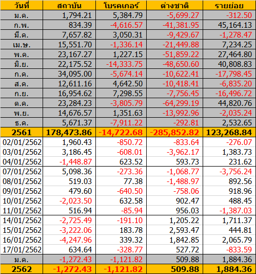 Sinthorn Summary 17/1/2562 : ต่างชาติซื้อสุทธิ 527.72 ลบ.