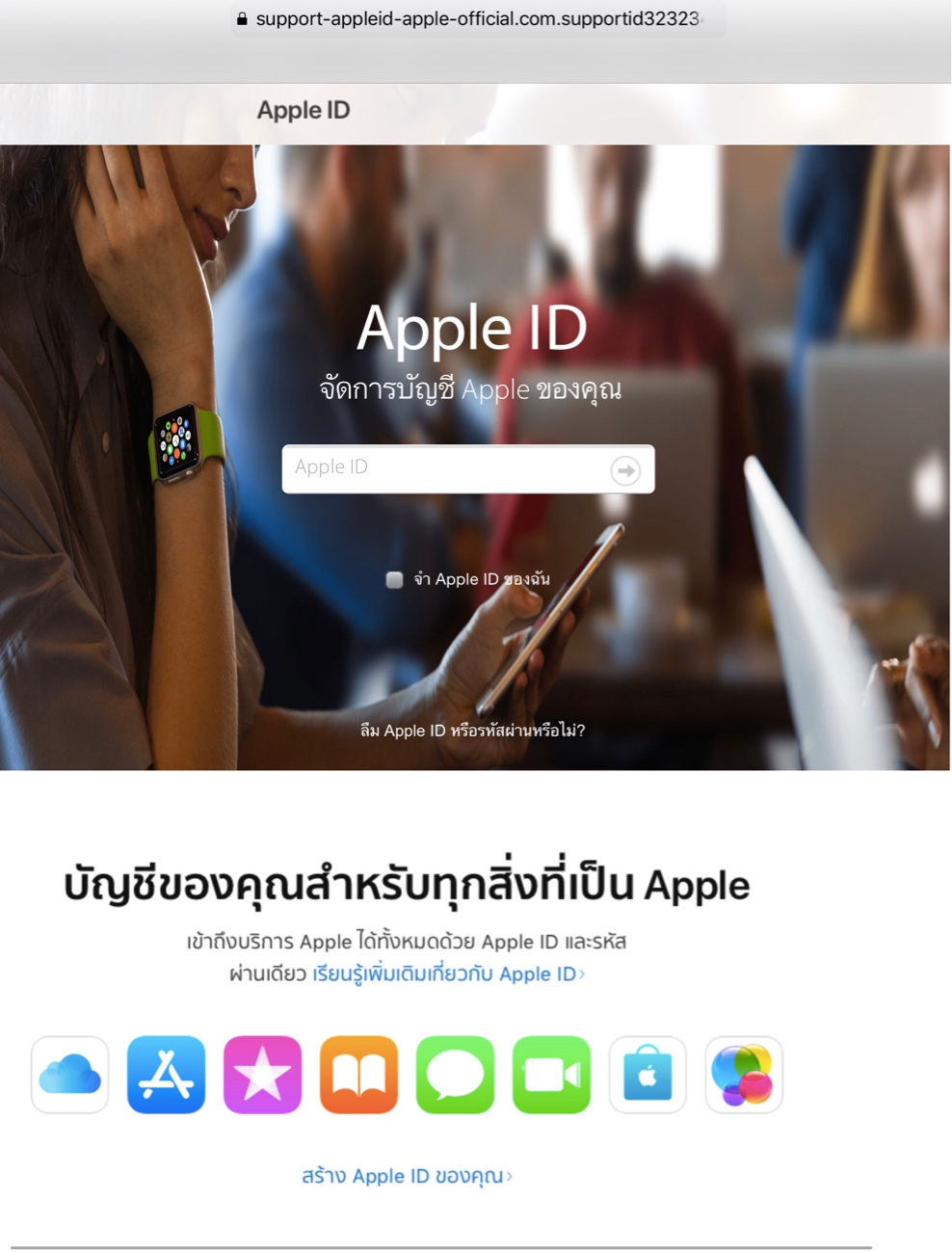 เมื่อกดลิงค์ https://support-appleid-apple-official.com.supportid3232345.com/account/?view=login&appIdKey=52db1092d6efebe&country=TH