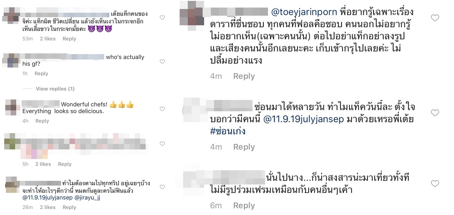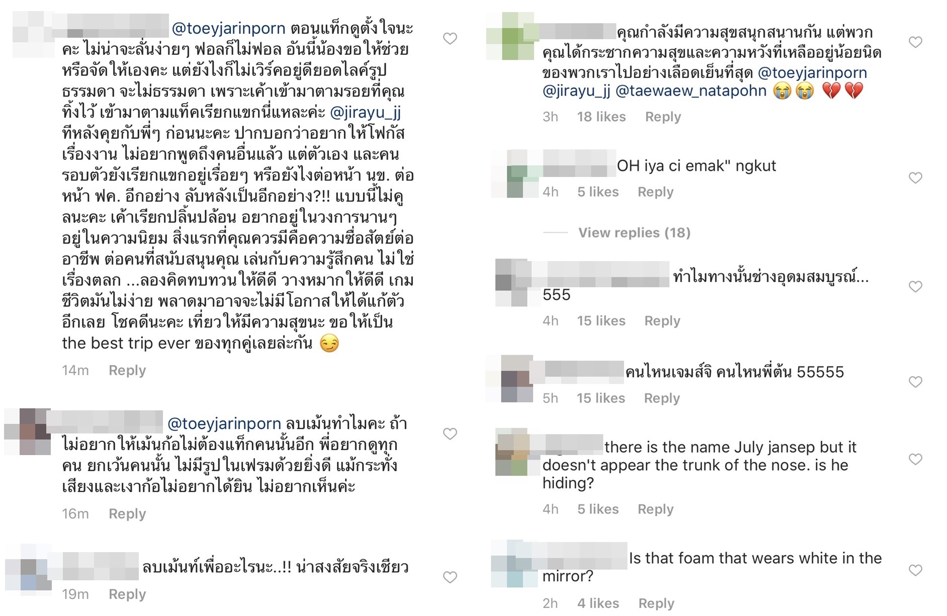 ซึ่งแฟนคลับบางส่วนได้เข้าไปคอมเมนท์ดราม่าใต้รูปภาพ โดยประเด็นที่พูดถึงคือการแท็กชื่อไอจีสาวโฟมในโพสต์แล้วลบออก การลบคอมเมนท์ที่เกี่ยวกับสาวโฟม ตลอดจนหากผู้หญิงเสื่อสีขาวที่ปรากฏในกระจกนั้นเป็นสาวโฟมจริง เหตุใดต้องตามติดหนุ่มเจมส์ไปทุกทริป ในขณะที่มีบางคอมเมนท์ที่รู้สึกเห็นใจหนุ่มเจมส์และสาวโฟม เพราะหากทั้งคู่ไปเที่ยวด้วยกันจริง ไม่มีสิทธิ์จะถ่ายรูปร่วมเฟรมด้วยกันเชียวหรือ? ทั้งนี้ก็ยังไม่มีใครทราบว่าที่จริงแล้วในทริปดังกล่าวนั้นมีสาวโฟมไปด้วยหรือไม่ :- ไนน์เอ็นเตอร์เทน