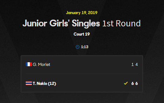 การแข่งขัน เทนนิส จูเนียร์ ออสเตรเลี่ยนโอเพ่น 2019 ณ กรุงเมลเบิร์น ประเทศออสเตรเลีย โดยในวันนี้ 19 มกราคม 2562 เป็นการแข่งขันจูเนียร์วันที่สอง หลังจากเมื่อวานนี