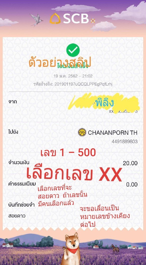 เลือกเลขมา 1 ตัว (1-500) พิมพ์ใส่สลิป