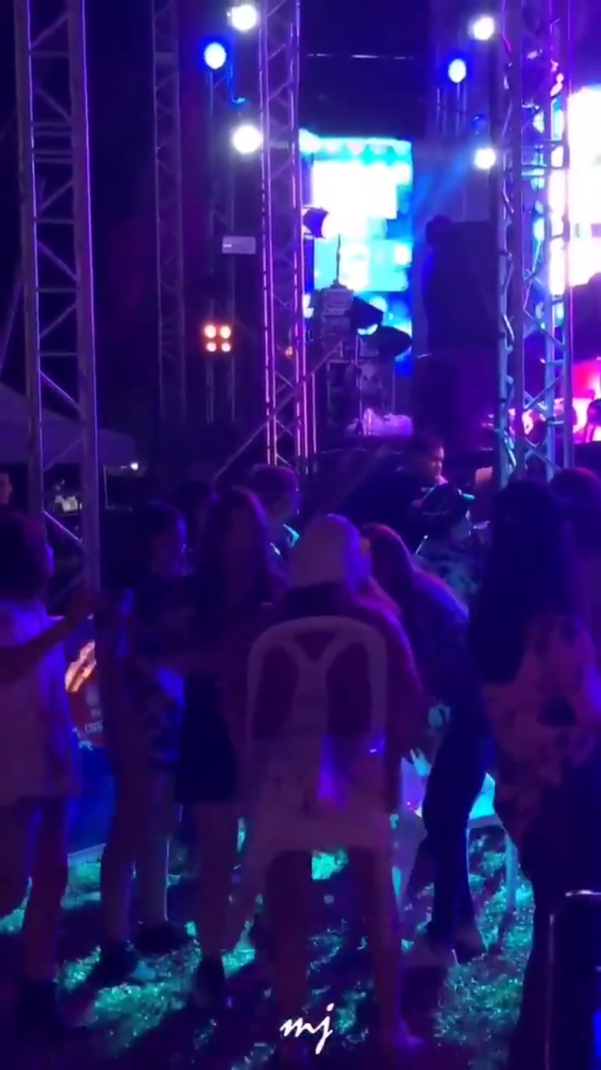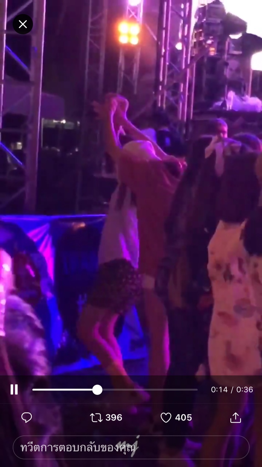 จากนั้น บอสก็แสดงคอนเสิร์ตด้วยความดีด และมาเต้นหน้าเวทีต่อด้วยความกาว