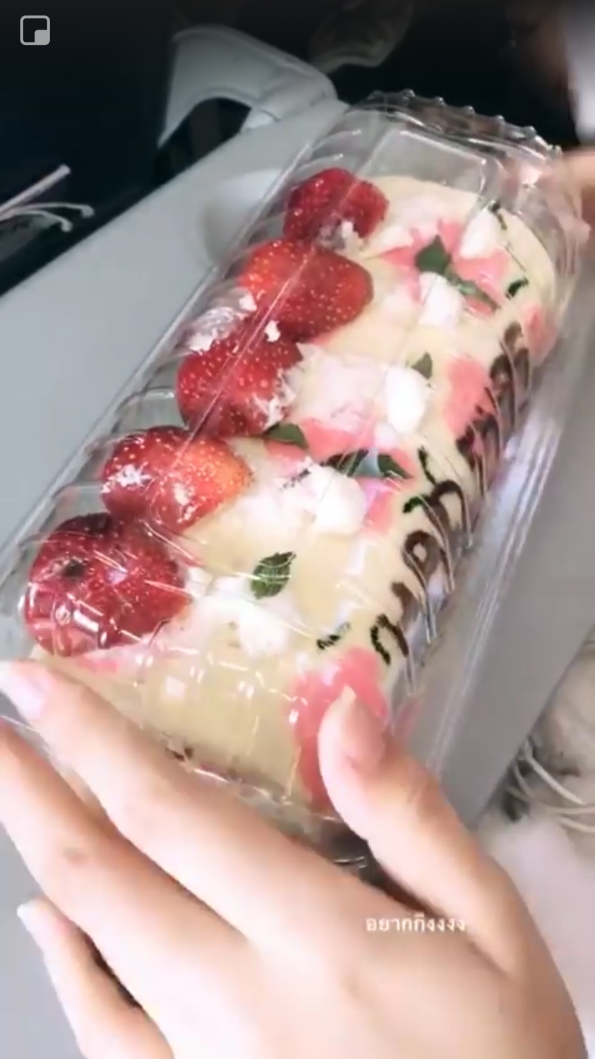 บอสดีใจได้กินเค้ก เต้กมันต้องกินกับผลไม้สิ มันอร่อยที่สุดแล้ว ถูกใจมาก ตาเป็นประกาย ปากยื่นเลยทีเดียว