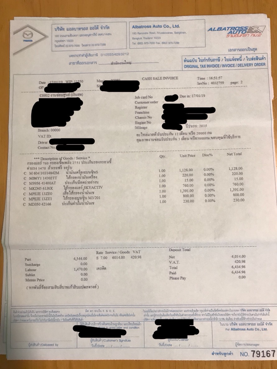 เมื่อวันที่ 17 มกราคม พ.ศ. 2562 ที่ผ่านมาเราได้นำรถเข้าศูนย์เพื่อเช็คระยะ และทางเจ้าหน้าที่ได้แจ้งรายการเปลี่ยนตามใบเสร็จที่แนบค่ะ หลังจากรับรถมาเรียบร้อยแล้วเจ้าหน้าที่พาไปที่รถ ตอนเราเข้าไปนั่งครั้งแรกนี่เราได้กลิ่นน้ำมันรถชัดเจนค่ะ แต่ทางเจ้าหน้าที่แจ้งว่าได้เปลี่ยนกรองเชื้อเพลิงให้จะมีกลิ่นน้ำมันเป็นปกติ กลิ่นจะจางหายไปเองค่ะ จึงไม่ได้อะไรค่ะ ทนดมกลิ่นน้ำมันตลอดทางขับรถกลับบ้าน