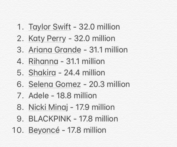 TOP 10 ศิลปินหญิงที่มีสมาชิกติดตามมากที่สุดบน Youtube