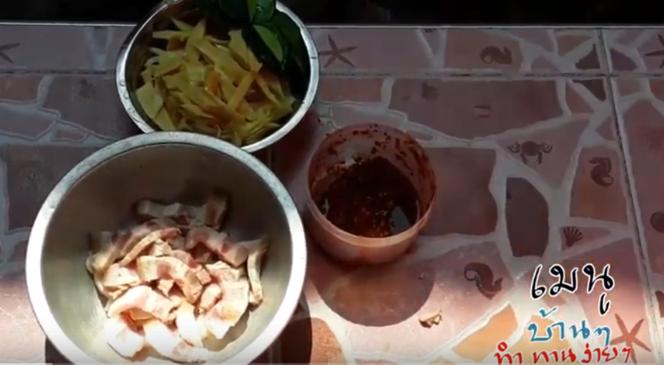 ส่วนประกอบ ผัดเผ็ดหน่อไม้หมูสามชั้น