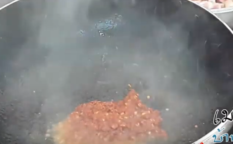 1.ตั้งกระทะใส่น้ำมัน นำน้ำพริกแกงลงไปผัดให้หอม