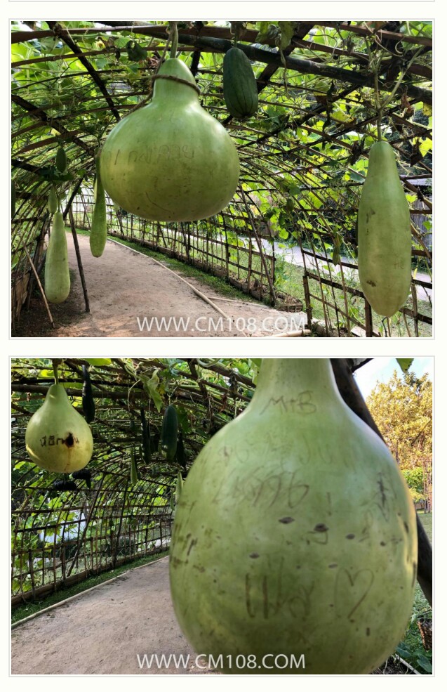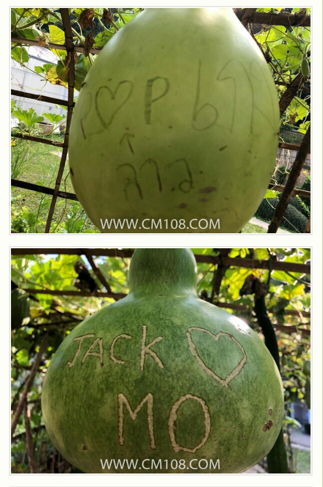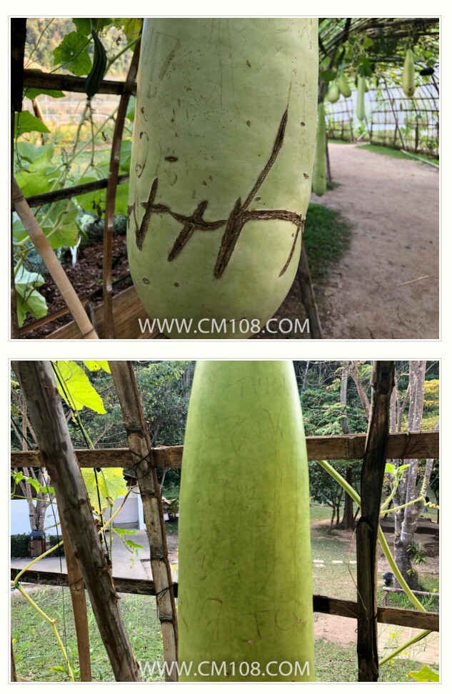 มือบอน ขีดเขียนชื่อลงบนฟักแฟงกว่าสิบลูกในสวนพฤกษศาสตร์สมเด็จพระนางเจ้าสิริกิติ์