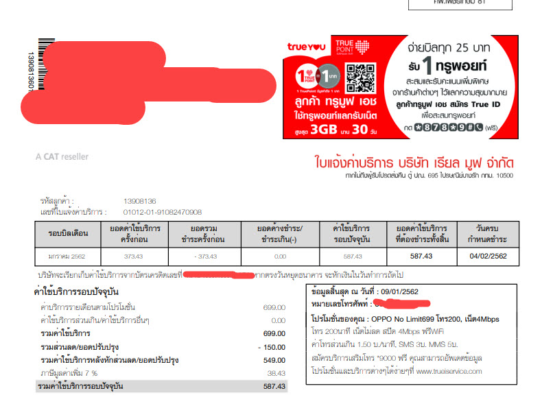ใบแจ้งหนี้เดือน มค. 62 ระบุโปร 699 บาท <-- มายังไง
