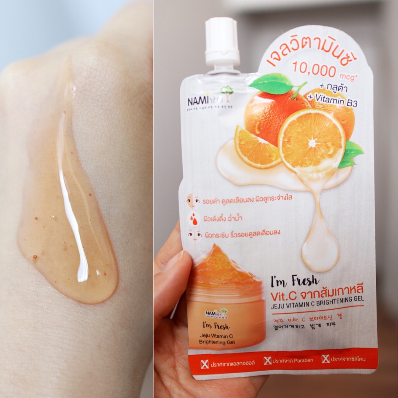 🍊ตัวแรกจะเป็นเจลส้ม หรือ เจลวิตามินซีเข้มข้นที่เค้าใส่สารสกัดอัดแน่นมาจากเกาะเชจู ประเทศเกาหลี นอกจากจะให้ความชุ่มชื้นกับผิวแล้ว ตัวนี้เค้ายังช่วยฟื้นบำรุงผิวอย่างเร่งด่วน ช่วยให้จุดด่างดำ รอยสิวดูจางลง ผิวดูกระจ่างใสขึ้น ใช้แล้วรู้สึกผิวนุ่ม ฉ่ำน้ำดี มีกลูตาไธโอนกับวิตามิน บี3 ด้วย