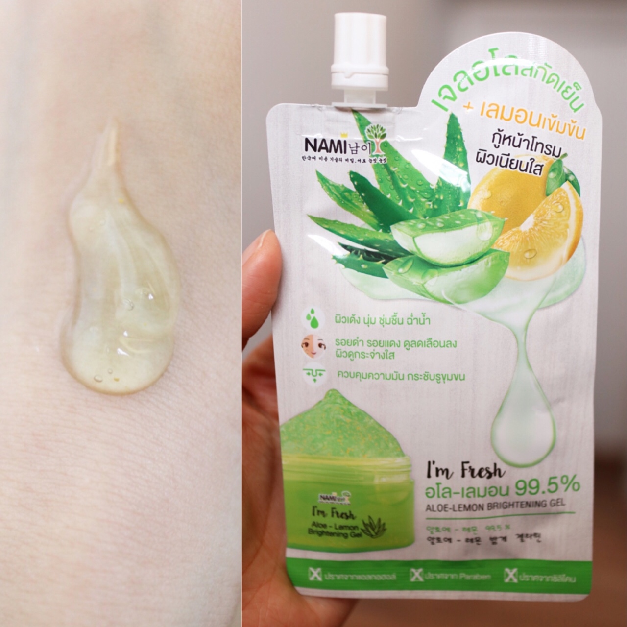 🥒ตัวที่สอง เป็นเจลว่านหางจระเข้สกัดเย็นเข้มข้น 99.5% ตัวนี้เน้นปรับผิวแห้งกร้าน ลอกเป็นขุยให้กลับมาเด้ง นุ่ม ชุ่มชื้นเลยยย ใครอยากให้ผิวฉ่ำน้ำสุดๆ หยิบซองนี้โลดดด แถมมีสารสกัดเลมอนเข้มข้น วิตามินบี3 และอัลฟ่าอาร์บูติน ที่ช่วยผลัดเซลล์ผิวเก่าที่หมองคล้ำออกอย่างอ่อนโยนด้วยจ้า ทำให้ผิวเรียบเนียน อิ่มน้ำ ดูกระจ่างใส ที่สำคัญยังช่วยปลอบประโลมผิวอักเสบ ผิวระคายเคืองให้กลับมาปกติด้วย ใช้แล้วคุมมัน กระชับรูขุมขนได้ดีเลย