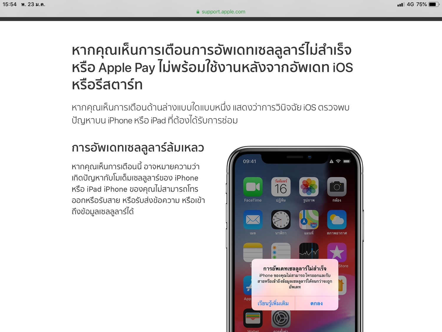 ไอโฟนเราขึ้นว่า ไม่สามารถโทรเข้าออกได้ ให้อัพเดท อาการตามภาพด้านล่าง