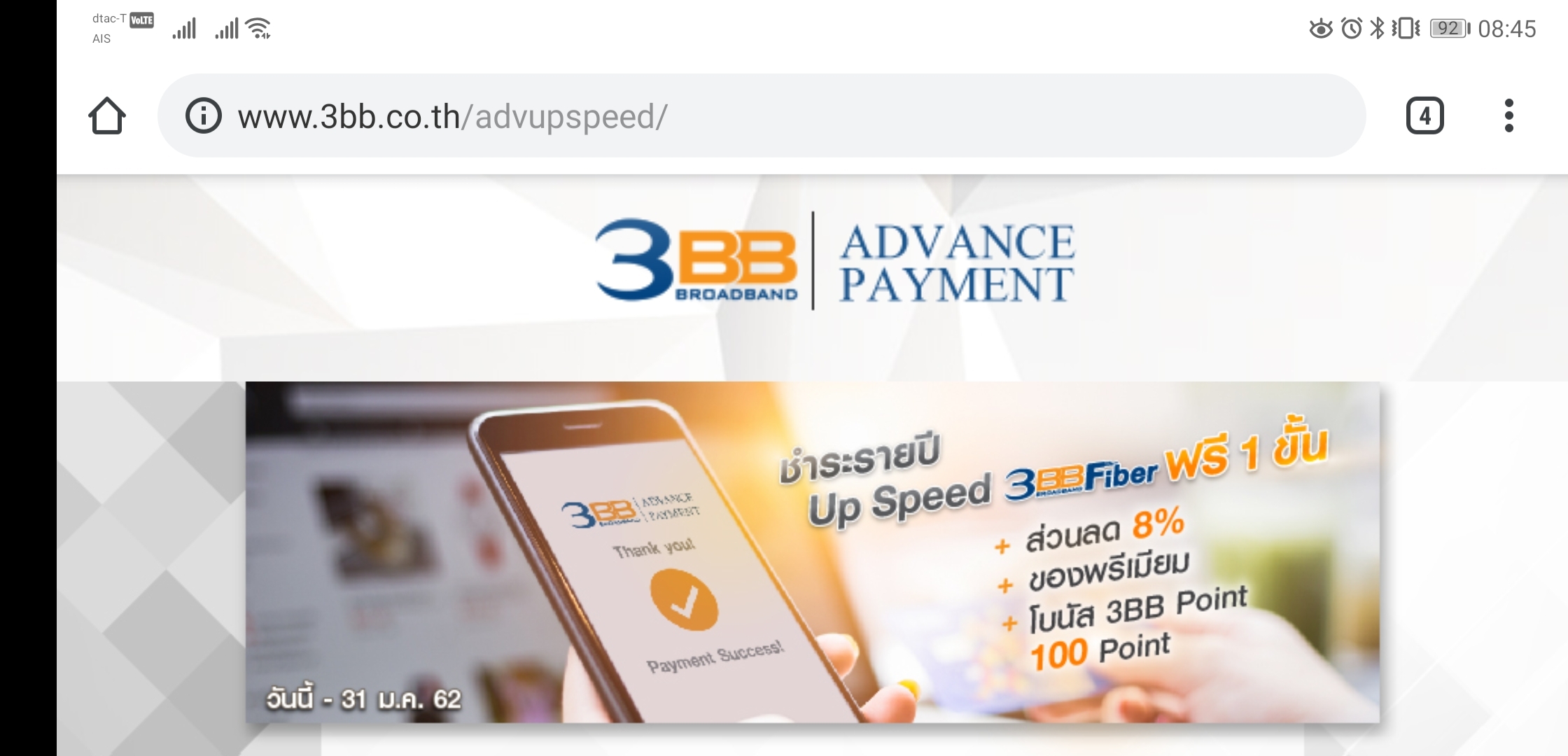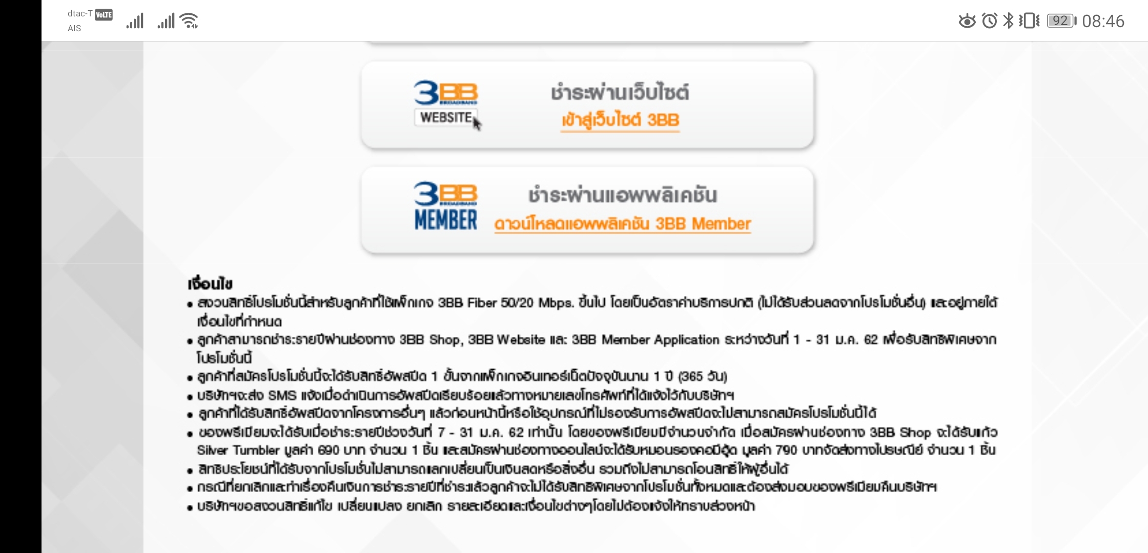 ส่วนตัวผมใช้งาน 3BB มาโดยตลอด ย้ายบ้าน ก็ยังคงใช้ 3BB และชอบใช้การจ่ายรายปีมาตลอด