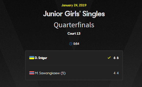การแข่งขัน เทนนิส จูเนียร์ ออสเตรเลี่ยนโอเพ่น 2019 ณ กรุงเมลเบิร์น ประเทศออสเตรเลีย ที่เหลือเด็กไทยเพียงหนึ่งเดียวที่สามารถผ่านมาถึงรอบนี้ได้ คือน้องไหม มนัญชญา สว่างแก้ว ลงทำการแข่งขันหญิงเดี่ยว ในรอบ 8 คนสุดท้าย โดยเป็นมืออันดับ 17 ของโลก และเป็นมือวางอันดับ 5 ของรายการ
