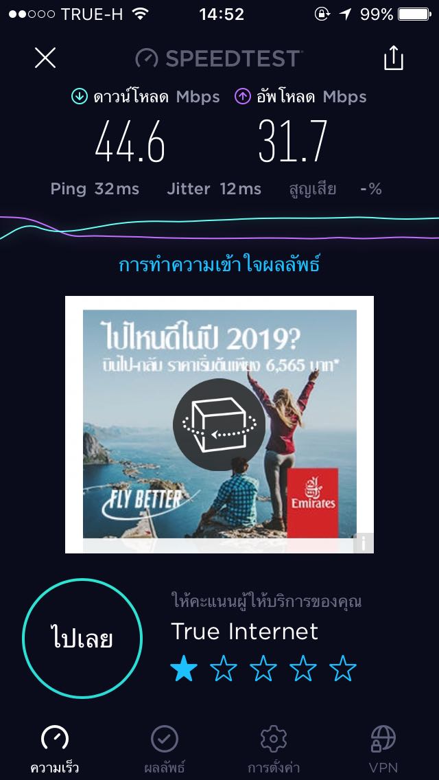 ใช้แพ็กเกจ 100/30 Mbps เน็ตไม่มาเต็ม 100 Mbps เลย ต่างจากเจ้าอื่นที่เคยใช้มาเต็มตลอด อยากจะให้ True พิจารณาต้องส่วนนี้บ้างนะคะ