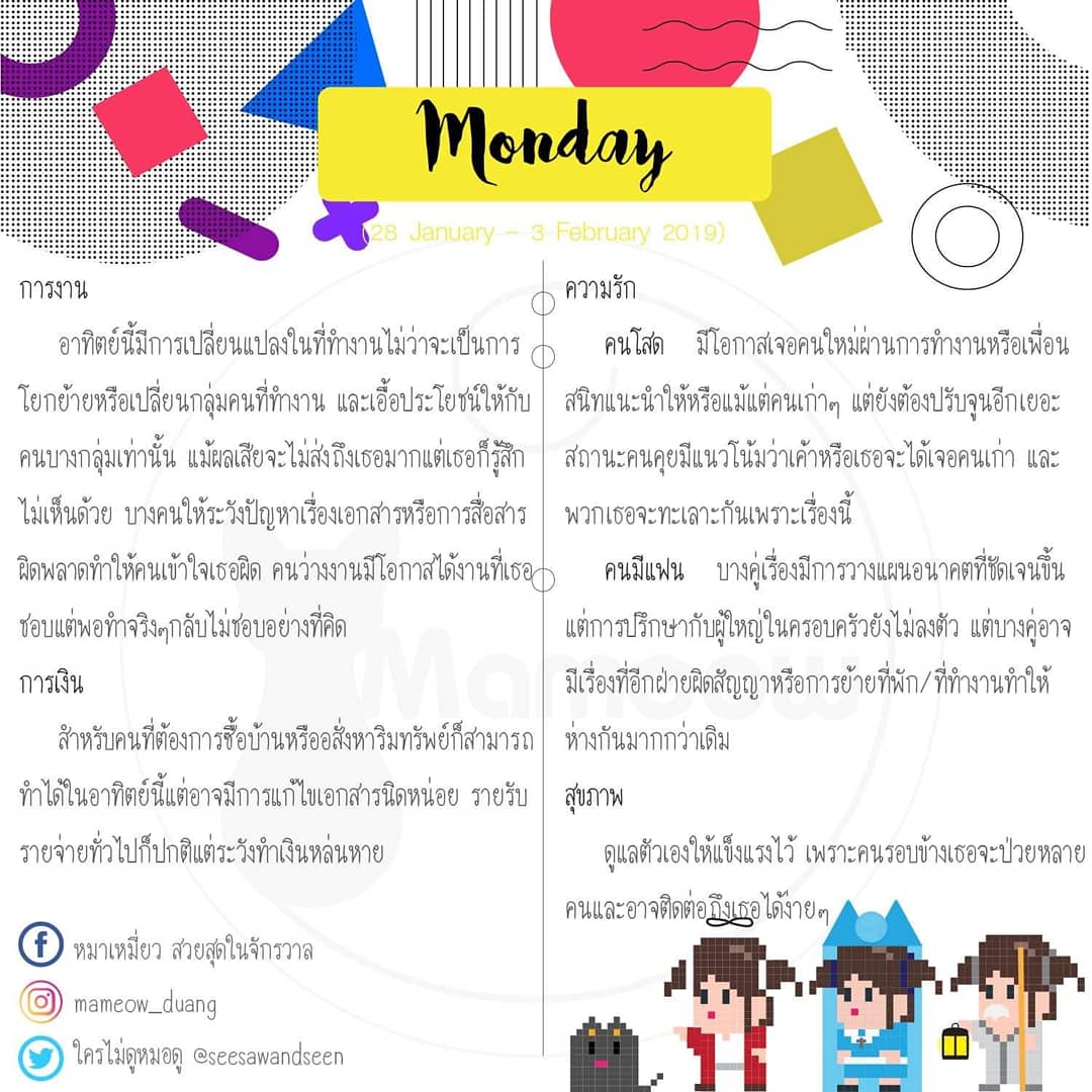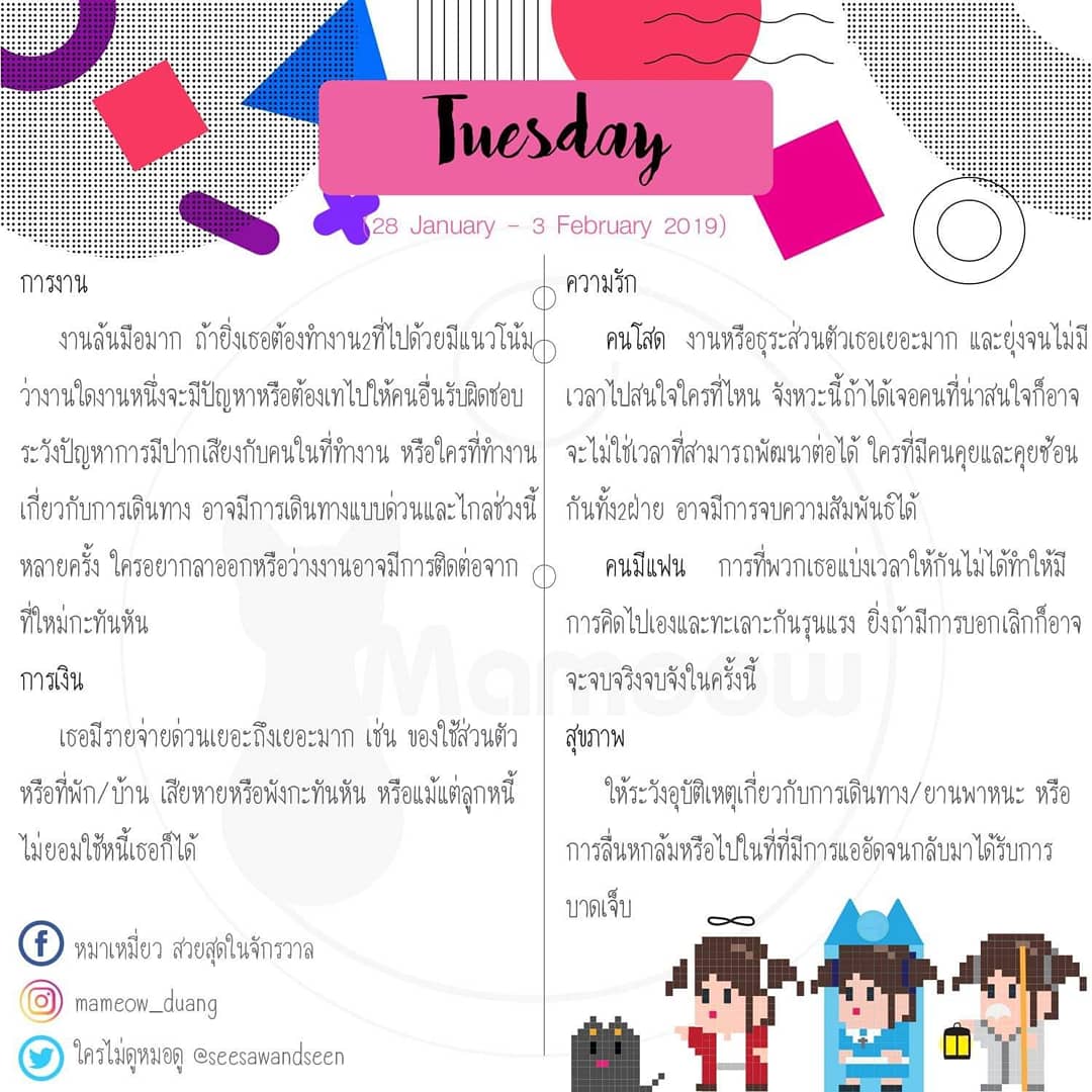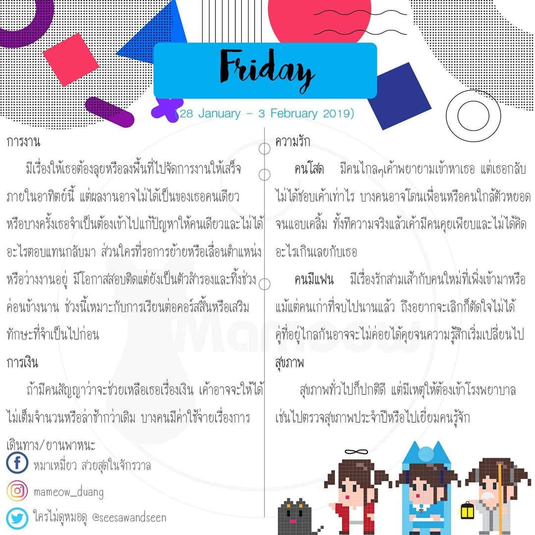 ดวงรายสัปดาห์ระหว่างวันที่ 28 มกราคม - 3 กุมภาพันธ์ 2562