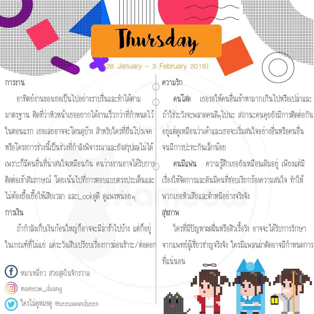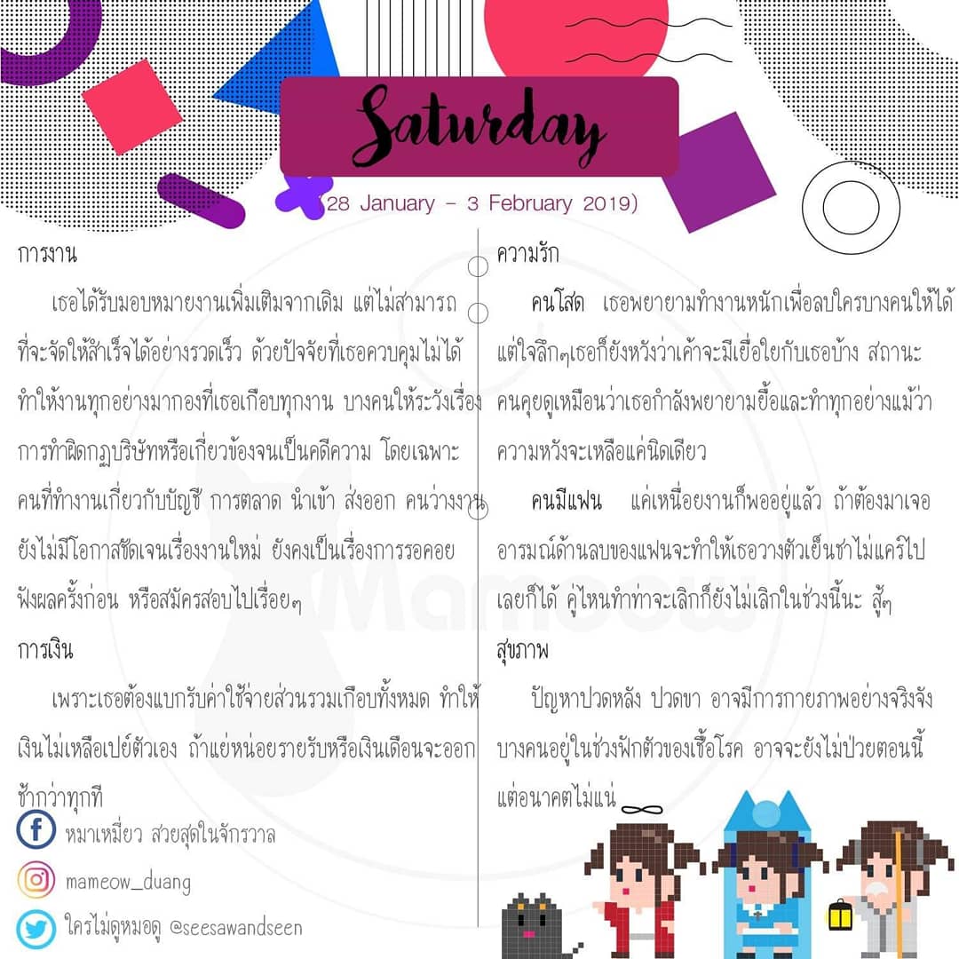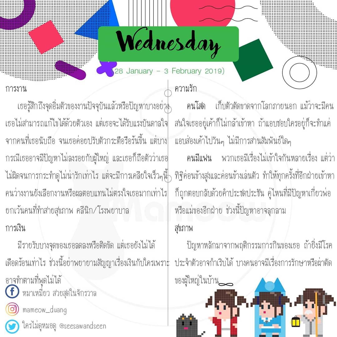 ดวงรายสัปดาห์ระหว่างวันที่ 28 มกราคม - 3 กุมภาพันธ์ 2562