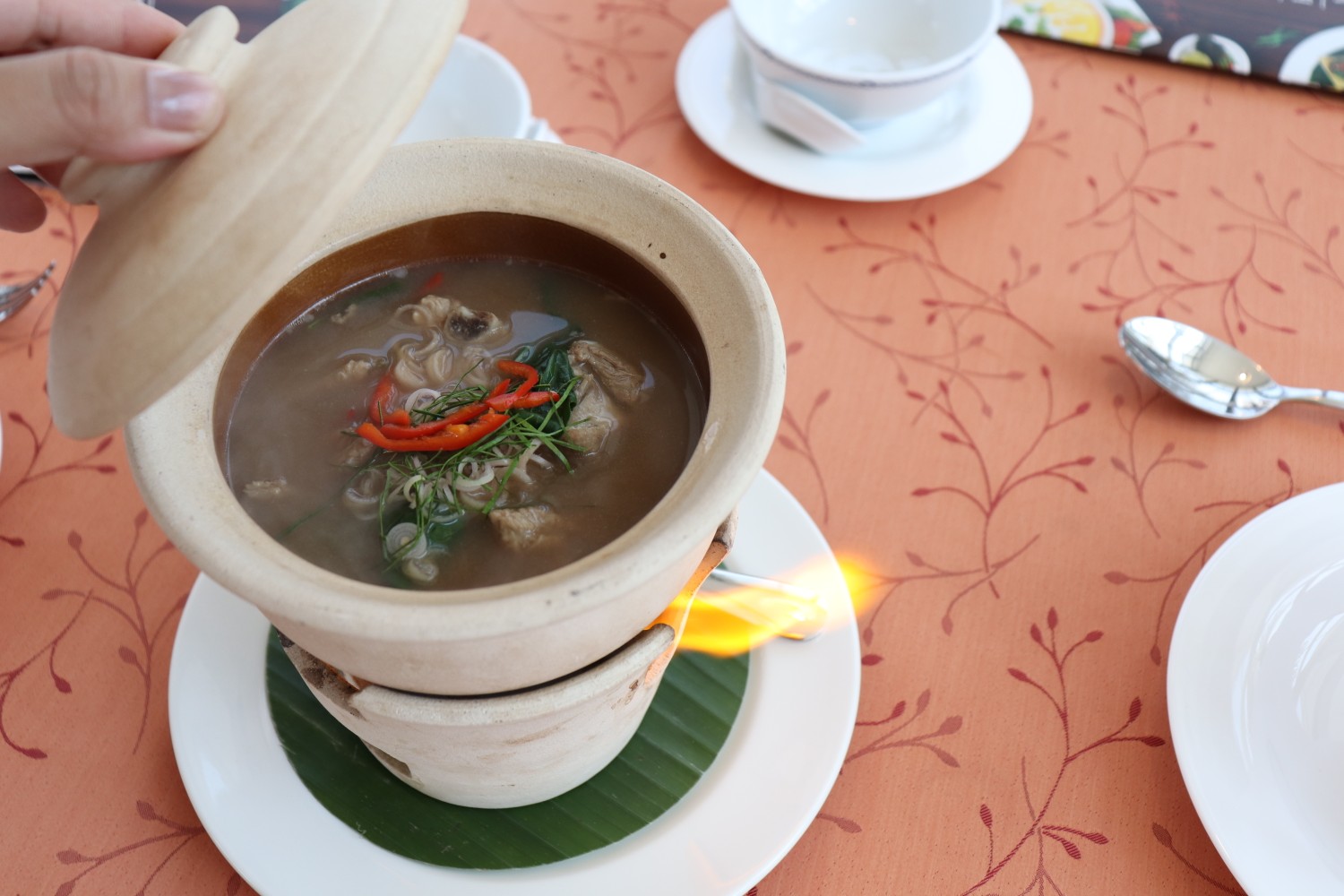 เมนูแกงรัญจวนมาแบบเป็นหม้อไฟร้อนๆ เลยค่ะ ในหม้อจะมีกระดูกหมูต้มมาในน้ำซุป รสชาติดีถูกใจทีเดียวค่ะ ราคาจะอยู่ที่ 250 บาทนะคะ