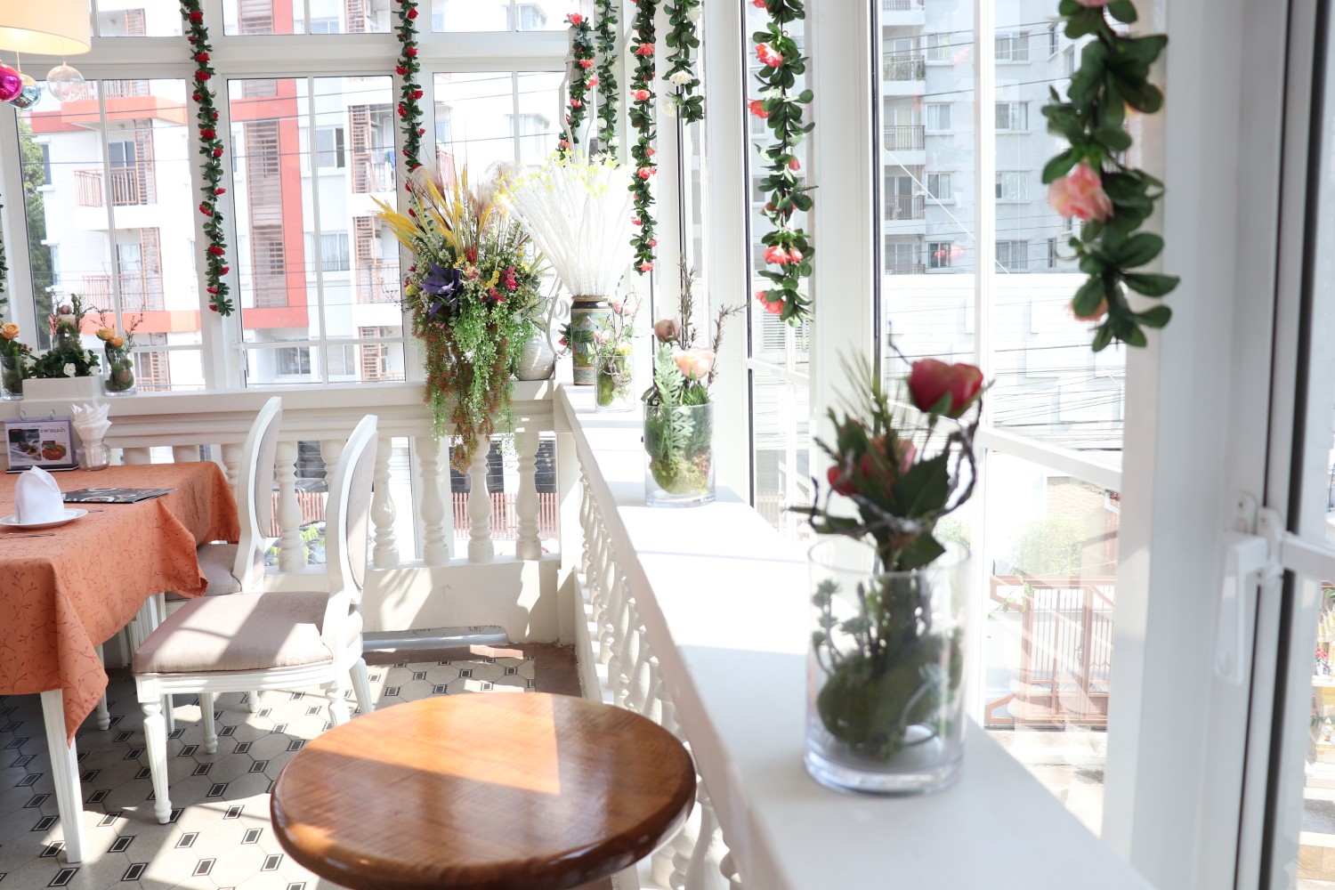 ขึ้นมาที่ห้องอาหารเรียบร้อยค่า บรรยากาศสวยงามน่าประทับใจดี จะเป็นห้องสีขาวๆ ตกแต่งด้วยกระจก แสงเข้าค่อนข้างดี วันนี้ต้องได้รูปสวยแน่ๆ เลยค่ะ