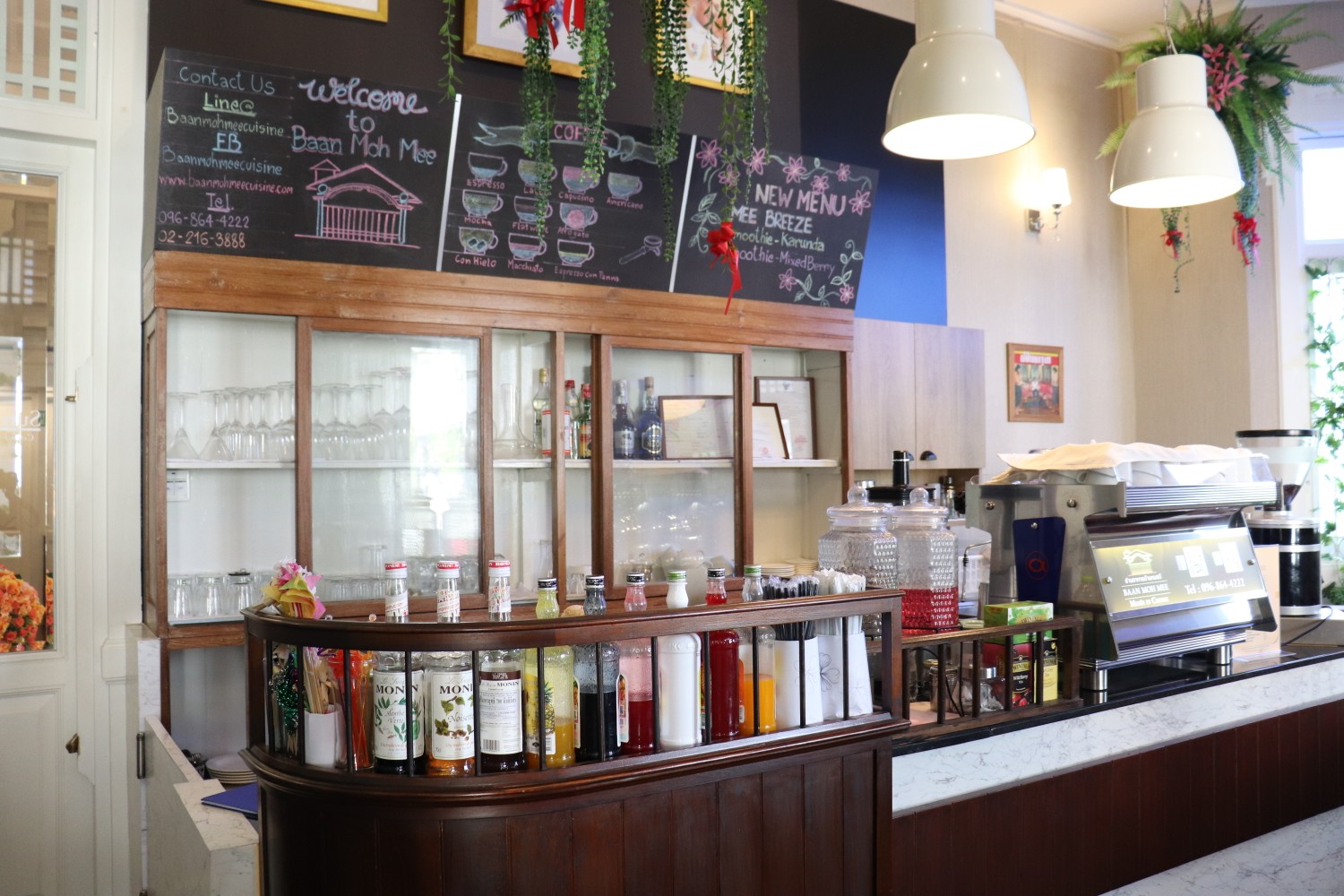 เมื่อเข้ามาในตัวบ้านจะพบกับห้องแรกค่ะ เป็นห้องกาแฟ มีเครื่องดื่มหลากหลายไว้สำหรับบริการลูกค้าที่อยากจะแวะมาดื่มเครื่องดื่ม