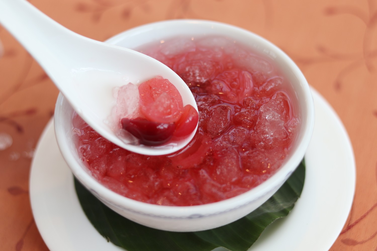 ส่วนขนมหวานของเราเองนั้นเป็นมะม่วงหาว มะนาวโห่ลอยแก้ว ถ้วยนี้ราคา 80 บาท ตัวมะม่วงหาวมะนาวโห่ไม่ฝาดเลยค่ะ เราเองเคยไปซื้อที่สวนที่ต่างจังหวัด รู้สึกว่าเวลาทานสดจะมีรสฝาดนิดๆ แต่จานนี้ที่ทำเป็นลอยแก้วมาเรียบร้อย ไม่มีรสฝาดเลยค่ะ เวลากัดเข้าไปเนื้อตัวมะม่วงหาว มะนาวโห่ก็กรอบมากๆ ส่วนตัวชอบของหวานเมนูนี้นะคะ