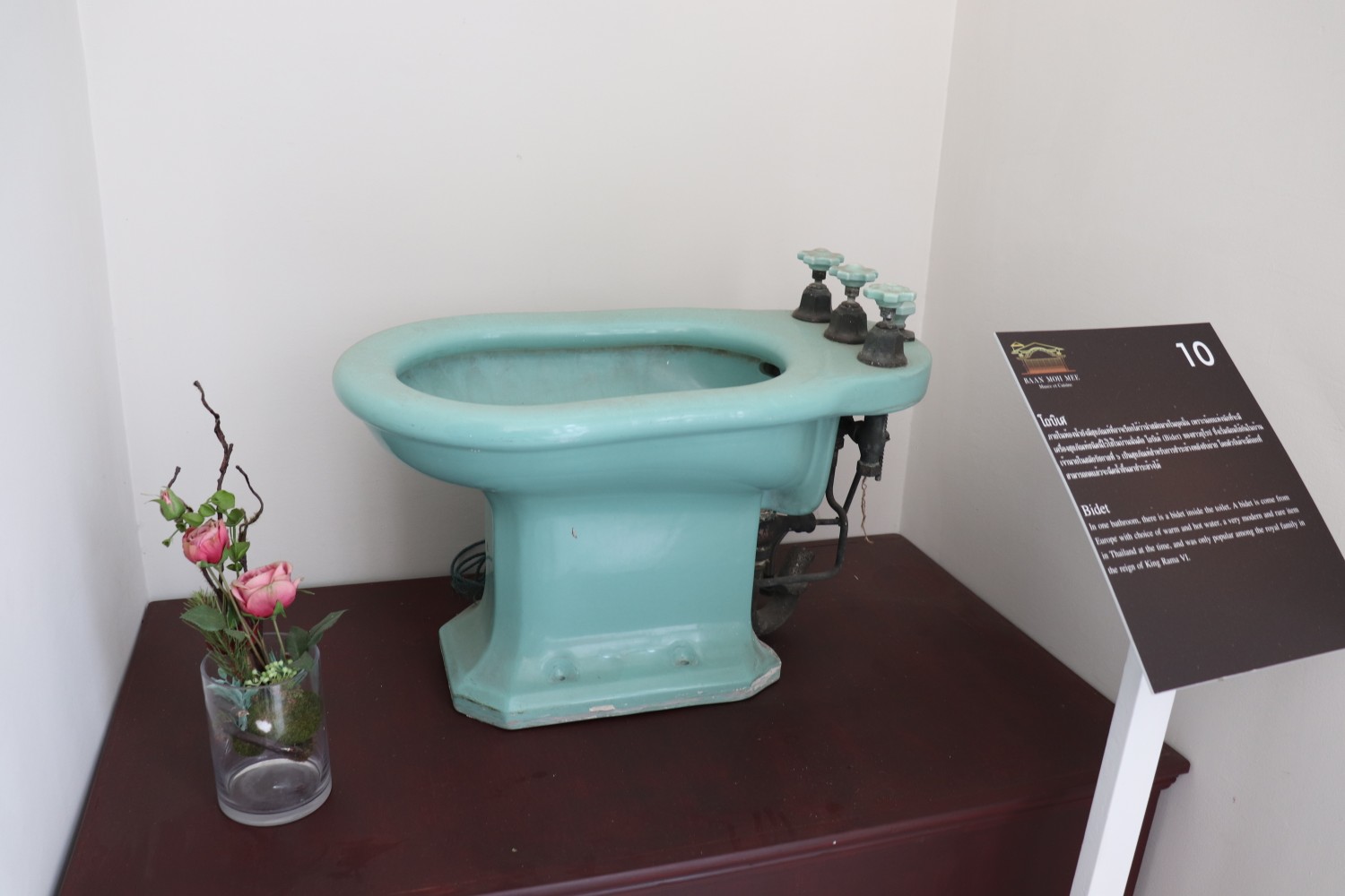 บริเวณห้องน้ำด้านนอกยังมีโถบิเด้จัดแสดงไว้ด้วยค่ะ บอกเลยว่าเป็นสุขภัณฑ์ที่ทันสมัยมากในสมัยก่อน โดยโถบิเด้นี้จะเริ่มใช้ในช่วงสมัยรัชกาลที่ 6 ค่ะ