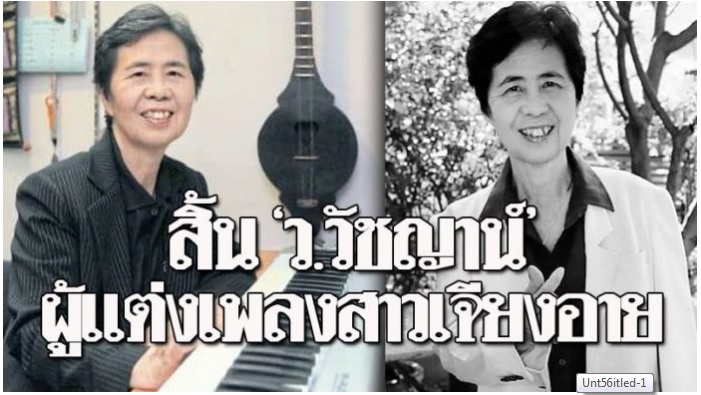 สาวเจียงฮาย / เมื่อวันที่ 28 ม.ค. ผู้สื่อข่าวรายงานว่า ‘บ่วย’ น.ส.วารุณี วัชญาน์ อายุ 68 ปี เจ้าของนามปากกา ว.วัชญาน์ ผู้ประพันธ์เพลง