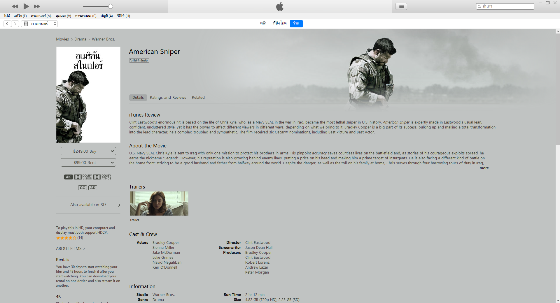 เปลี่ยนภาษาไทย itunes ตรงรายละเอียดของภาพยนต์ยังไงครับ