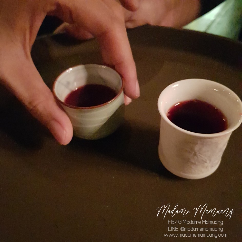 มี Welcome Drink เป็นน้ำกระเจี๊ยบเข้มข้น ที่อร่อยเพราะแก้วน้อยๆ ลวดลายแปลกตาแบบนี้