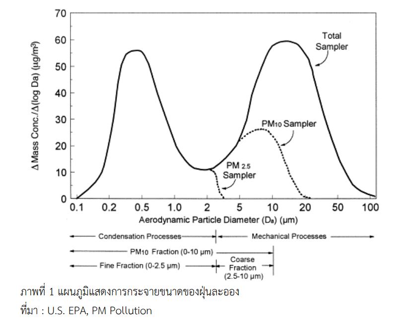ซึ่งมีรูป ตัวอย่างกราฟการประจายตัวของขนาดฝุ่น