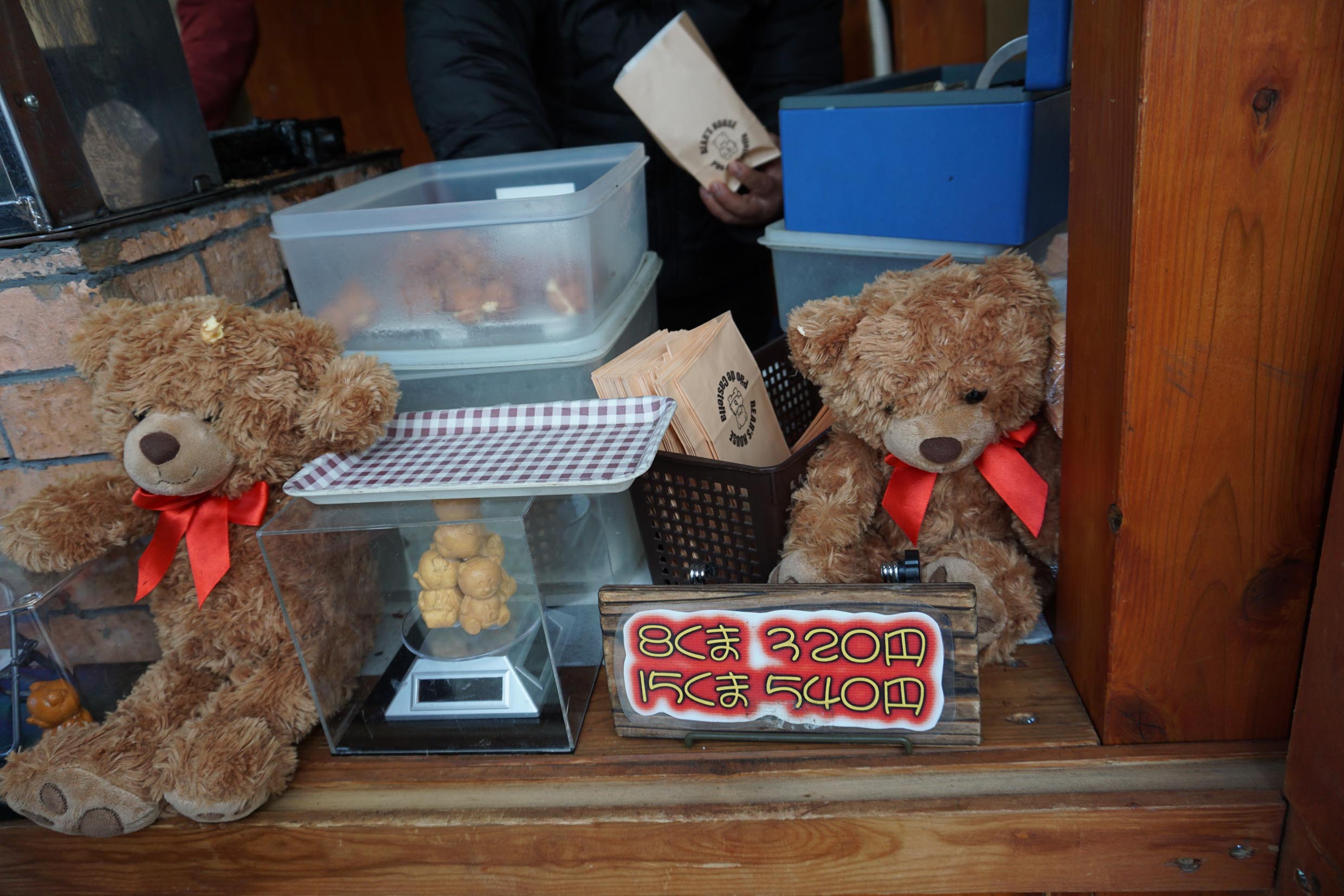ส่วนตรงข้ามร้านกาแฟ เป็นร้านขนมหมี รสชาติเหมือนแป้งขนมโตเกียวบ้านเรานี่แหละ เเต่เป็นเเบบกรอบนอกนุ่มใน มันอร่อยมากตรงที่อากาศหนาวๆกินร้อนๆนี่แหละค่ะ