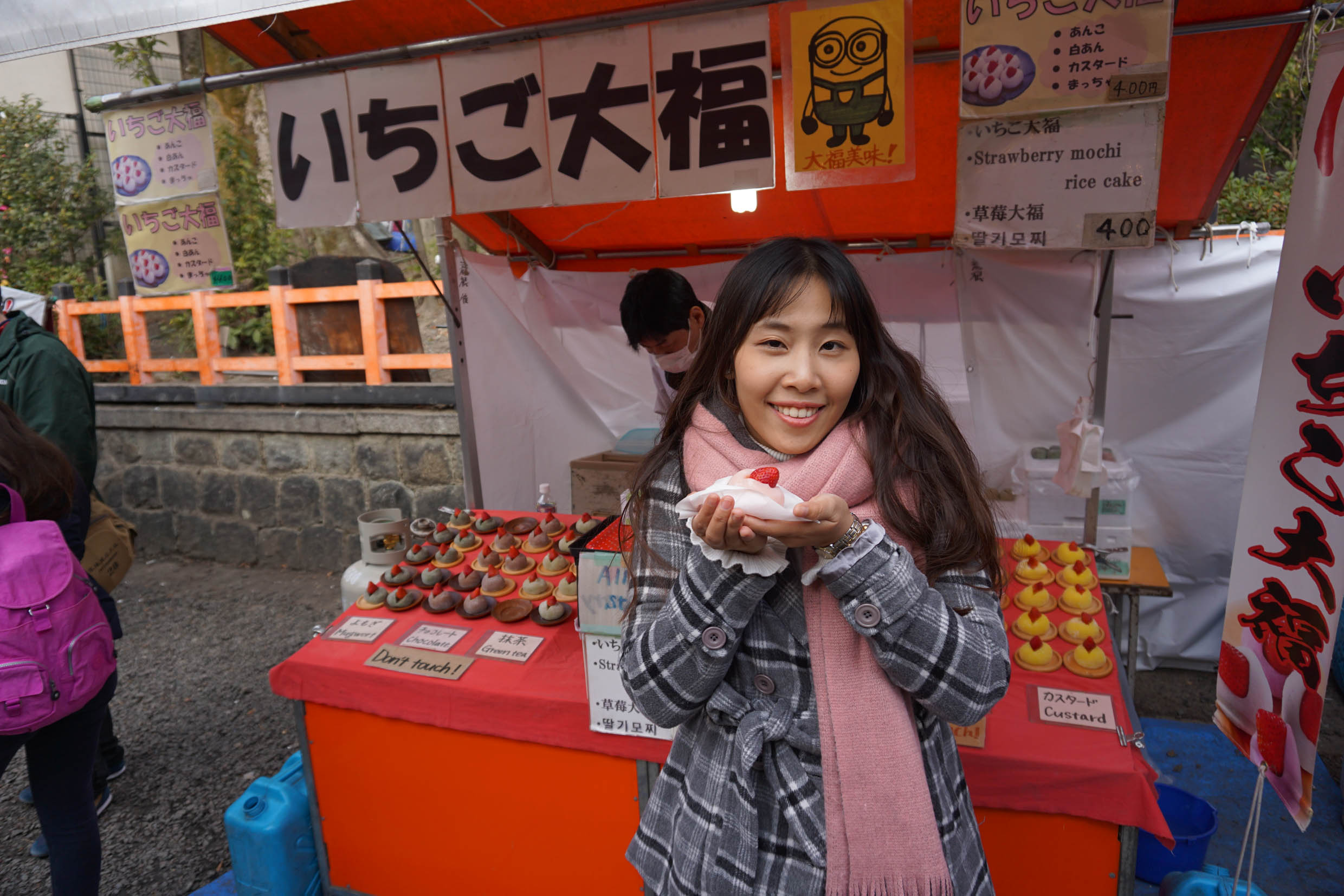 ต่อที่ ศาลเจ้าฟูชิมิ อินาริ ข้างหน้าจะเต็มไปด้วยร้านขายอาหารสตรีทฟู๊ดให้เลือกสรรมากมายค่ะ กิ๊กเลือกร้านนี้เลย ด้วยความที่มันดูสวยสดใสคาวาอิ๊555