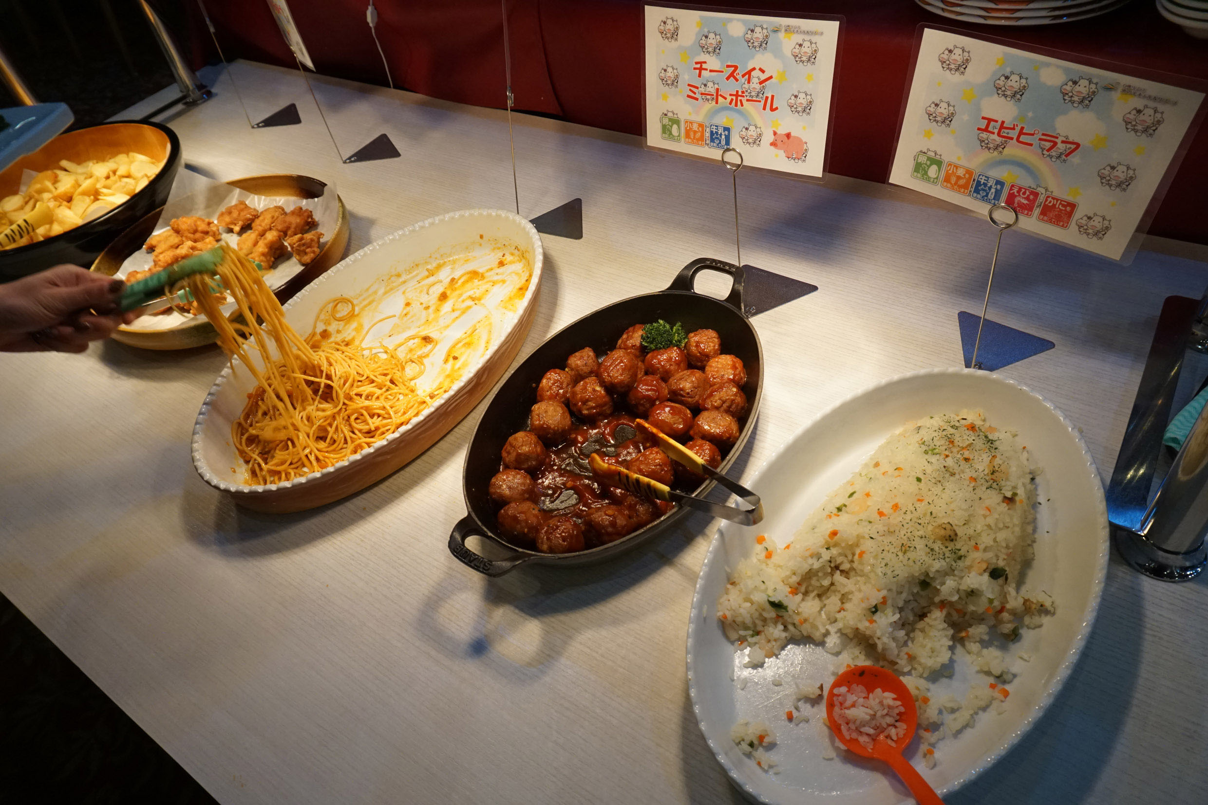 มาเริ่มโซนอาหารเด็กก่อนดีกว่า เพราะส่วนมากที่นี่เค้ามักจะมาเป็นครอบครัวกัน อาหารเด็กก็มีสปาเกตตี้ ข้าวผัด มีทบอล(อร่อย) มันทอด ไก่คาราอาเกะ