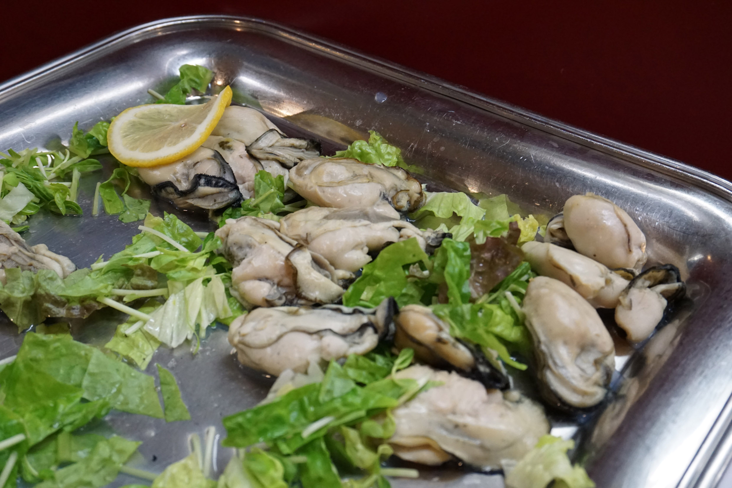 หอยนางรม กินกับเลมอน ก็เข้ากันค่า หอยเค้าหวานล้ะสดมาก อยากได้นํ้าจิ้มซีฟู๊ดคงจะดี ไกด์มีเตรียมไปน้ะ เเต่หยิ่งไม่เอาเอง555 แฟนกิ๊กกลัวไม่คุ้มกินหอยไป 9 ตัว(ไม่ต้องนอนเลยค่ะคืนนั้น55555)