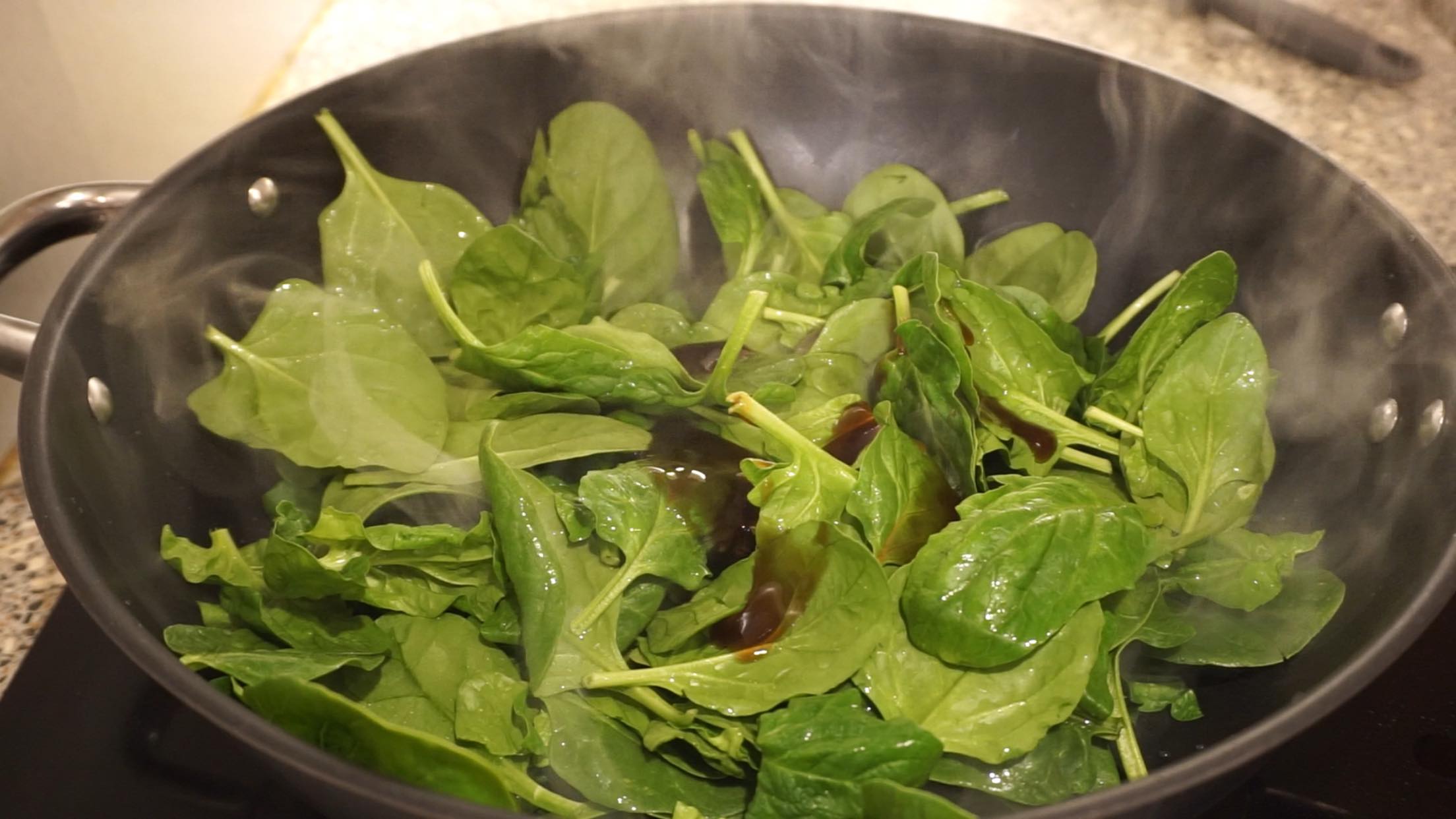 ผัดไฟแรง ผัดให้ผักโขมพอสุก