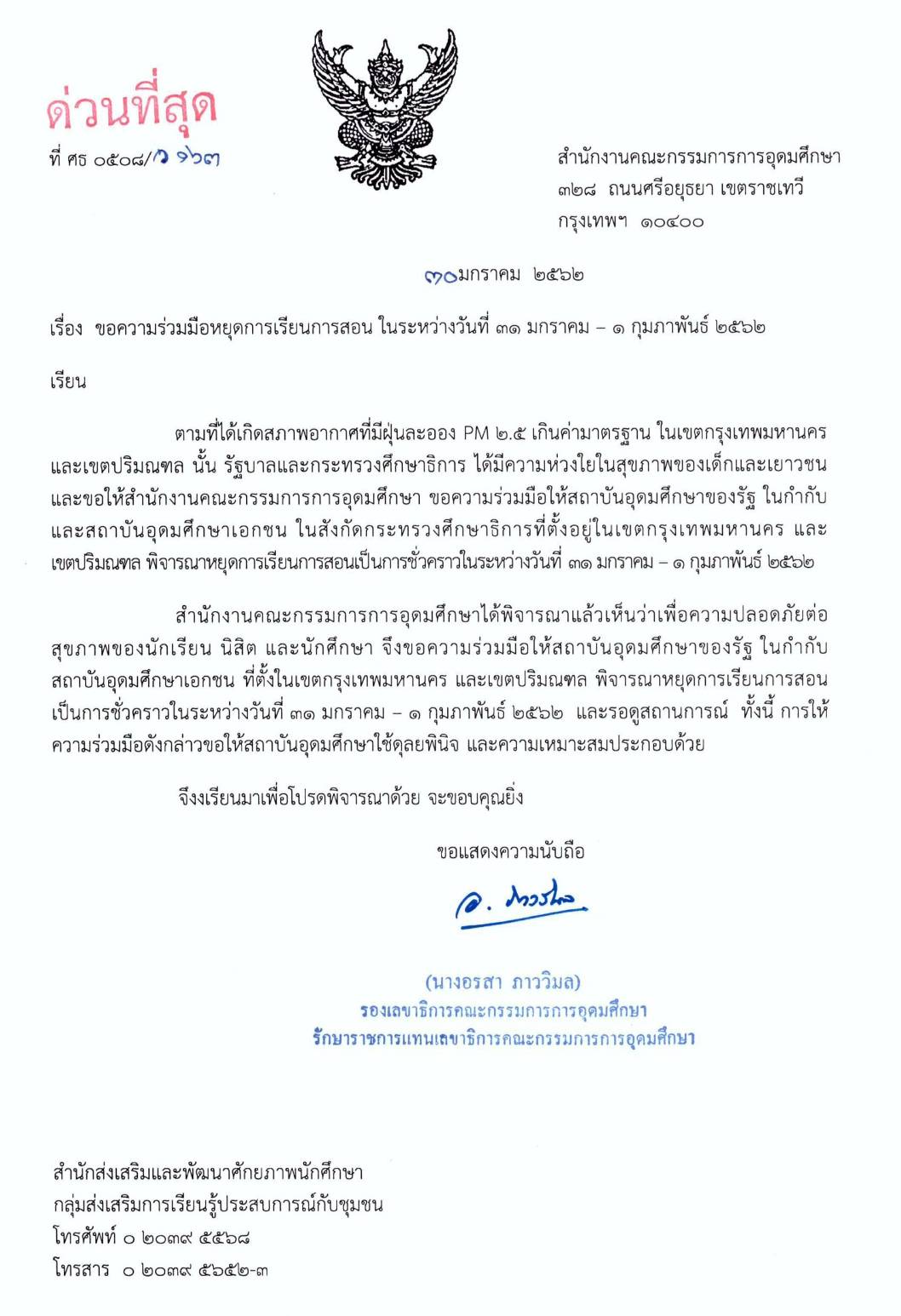 สำนักงานคณะกรรมการการอุดมศึกษาก็ขอความร่วมมือหยุดการเรียนการสอน