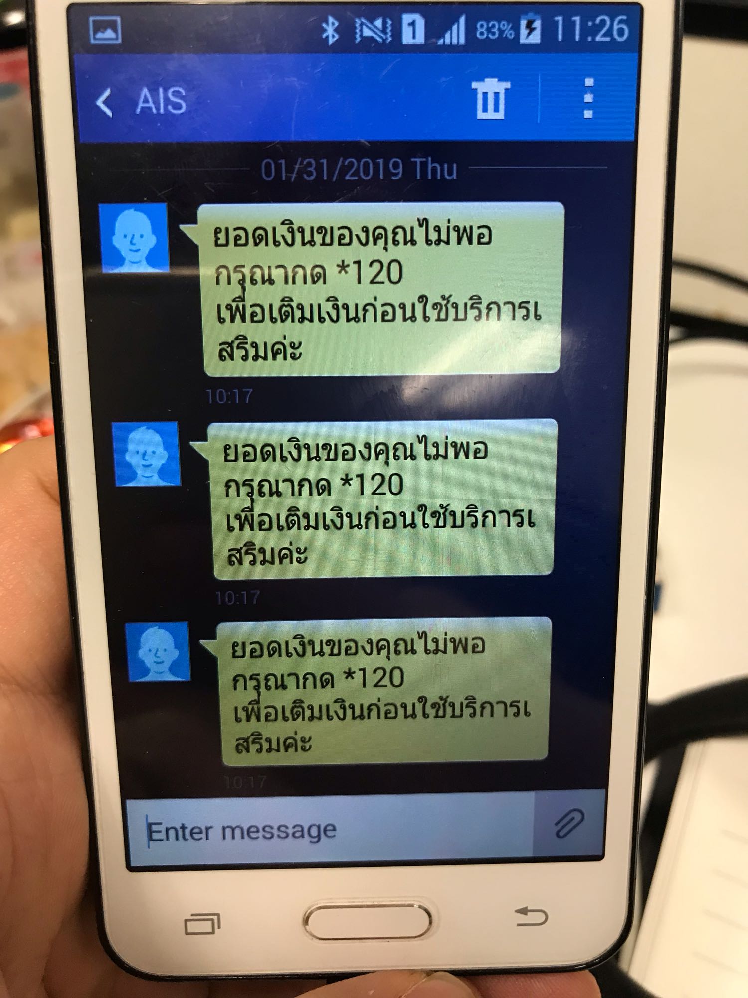 พอเดินออกจากร้านมี sms ทวงให้เติมเงินเข้ามา 200 ข้อความใน 15 นาที