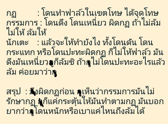 พอดีไปเจอคอมเมนต์นี้ใน youtube ก็รู้สึกว่าเห็นด้วย ว่าถ้าไม่ให้ล้มแล้วจะให้ทำไงกรรมการถึงจะเห็นว่ากองหลังมันฟาวล์นะ มันเล่นนอกกฎนะ
